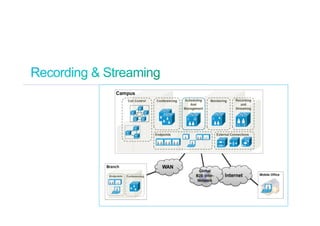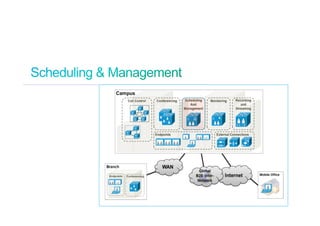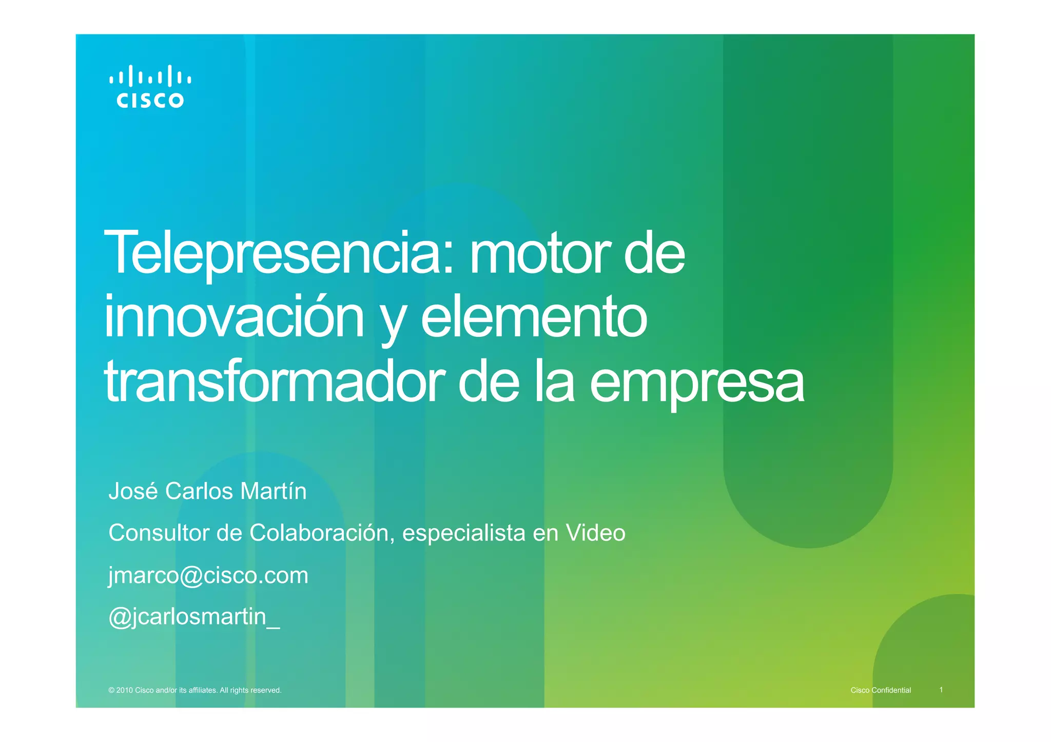 The document outlines the evolution and features of Cisco's telepresence technology, emphasizing its transition from video conferencing to immersive telepresence, characterized by lifelike interactions and simplified user interfaces. It covers a variety of telepresence solutions, including personal desktop products, and highlights the integration capabilities with existing communication and collaboration tools. Additionally, it discusses the architecture, scalability, and applications of telepresence in various sectors, including healthcare and education.