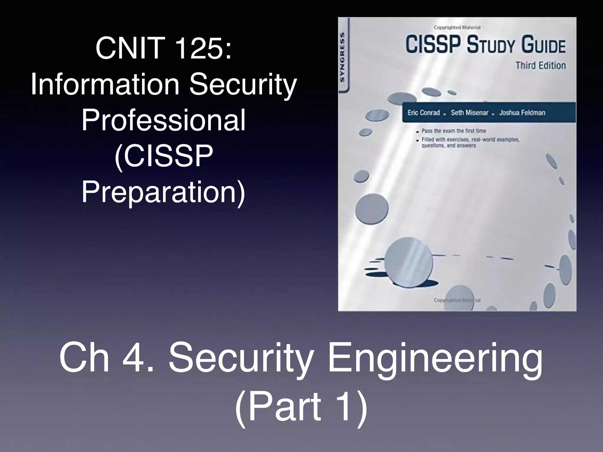 This document summarizes key concepts in information security models and engineering from Chapter 4 of the CISSP certification preparation material. It describes 10 common security models including Bell-LaPadula, Biba, and Clark-Wilson models. It also covers security concepts like security domains, the ring model, and evaluation methods like the Orange Book, ITSEC, and Common Criteria. Finally, it summarizes secure hardware architecture principles such as layering, abstraction, and memory protection.