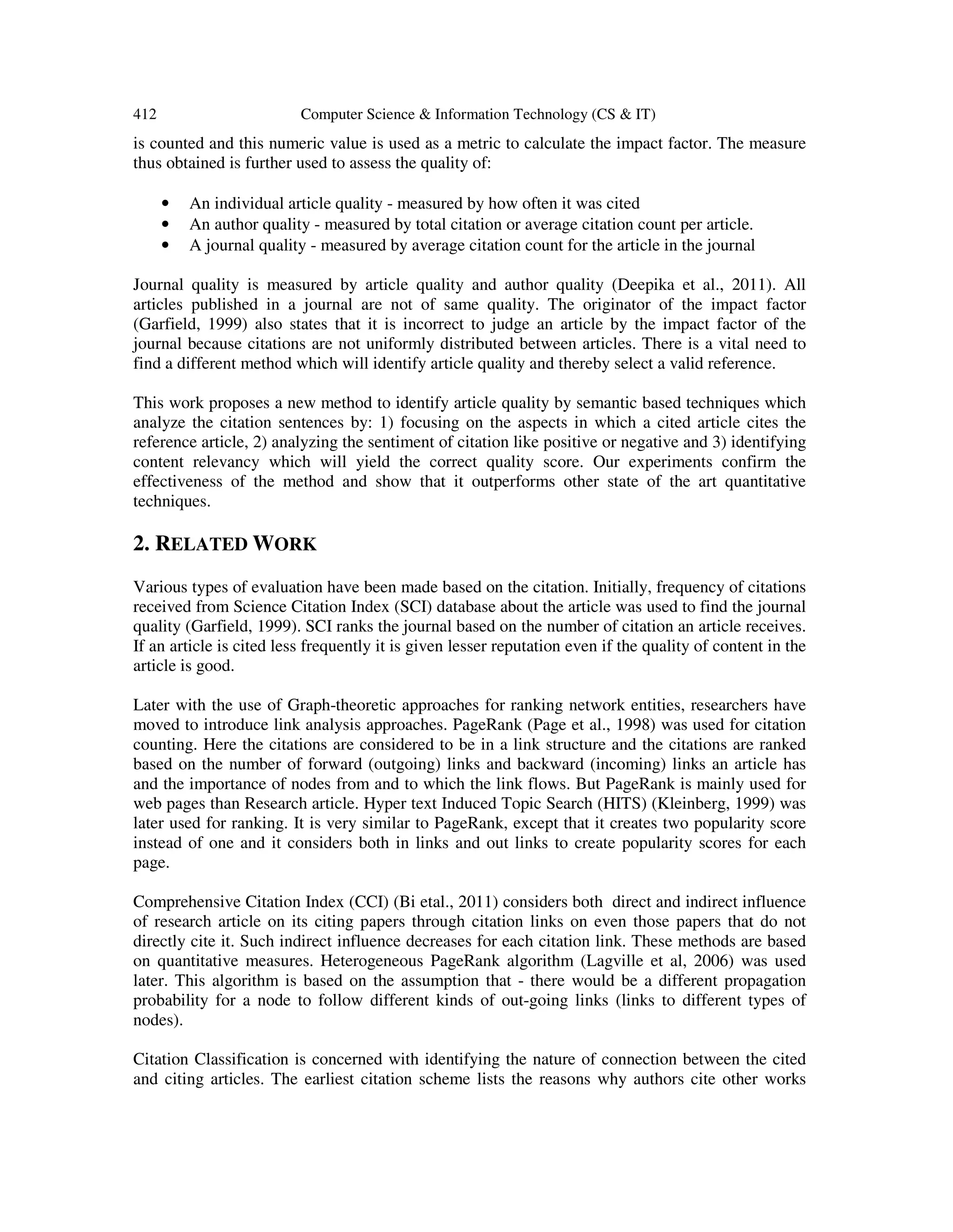 The document discusses a new method for evaluating the quality of research articles through semantic analysis of citations, moving beyond traditional citation count metrics. It introduces techniques like citation classification, sentiment analysis, and content relevancy to provide a more nuanced assessment of a paper's impact and quality. The effectiveness of the proposed methods is demonstrated through empirical results and comparisons with existing techniques.