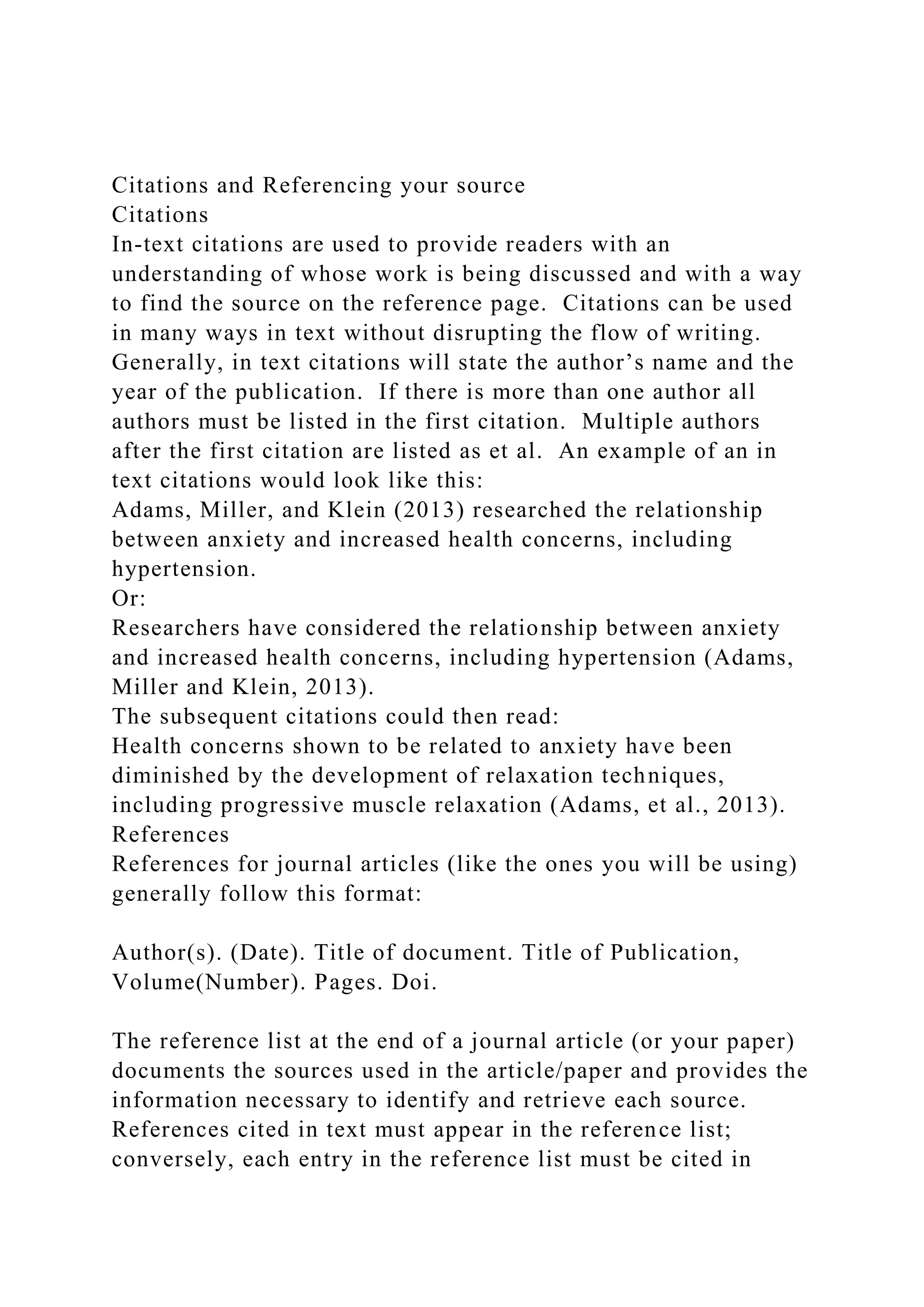 The document discusses the importance of citations and references in academic writing, particularly in the context of stress management among college students. It highlights research on the effectiveness of various stress reduction interventions, including cognitive-behavioral techniques and physical activity, which showed significant improvements in perceived stress, test anxiety, and personal burnout among participants over a semester. The study aimed to identify which intervention methods might be most effective in reducing stress levels among college students.