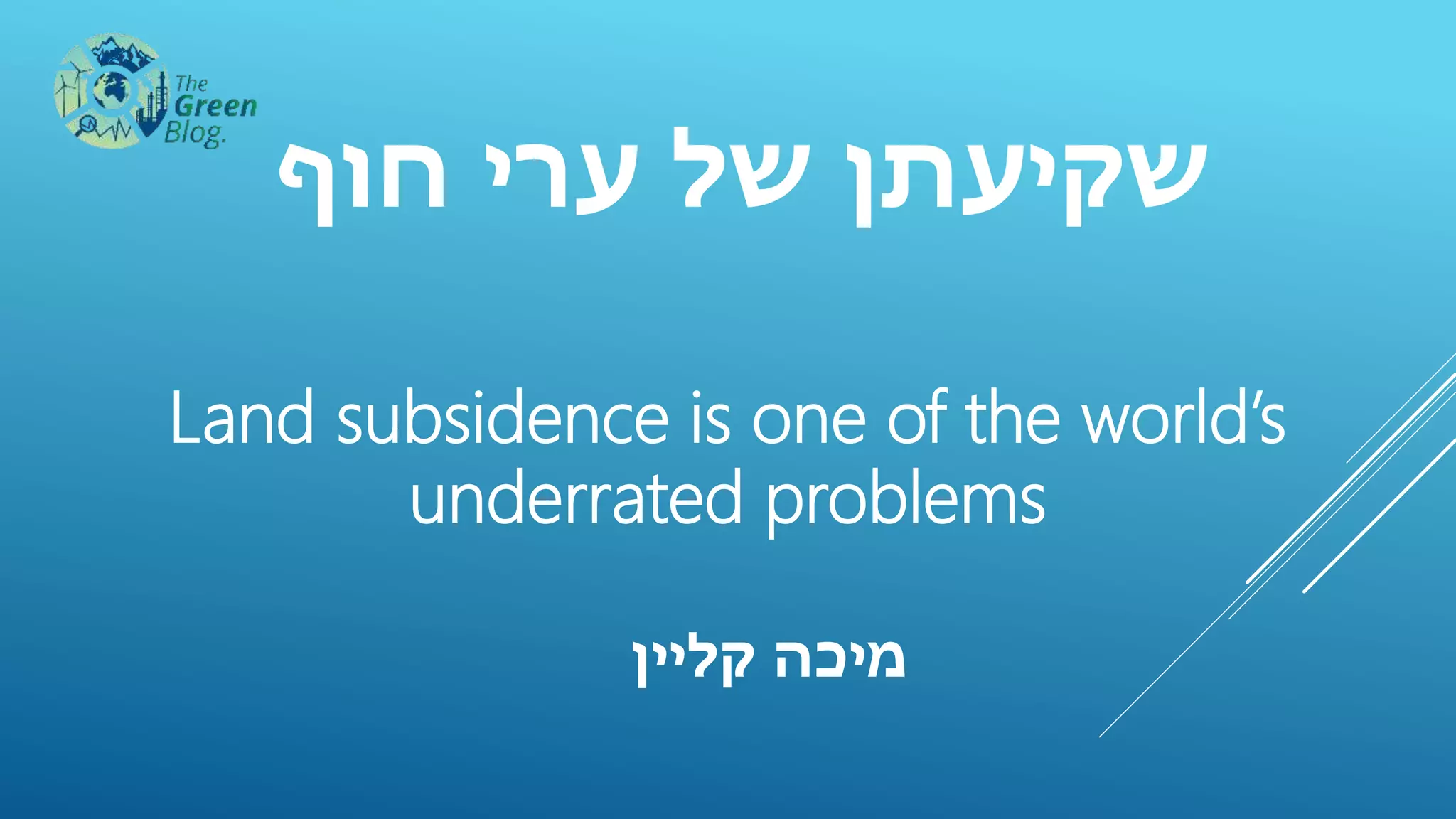 Land subsidence is one of the world's underrated problems. The document discusses the correlation between groundwater levels and land subsidence in Tokyo and Jakarta. It notes that when regulations on groundwater extraction were enforced in Tokyo, water levels rose and subsidence rates decreased. Examples of historical subsidence are also provided, such as in the Nile Delta from 1906-1978 and expected future subsidence maps for the Netherlands.