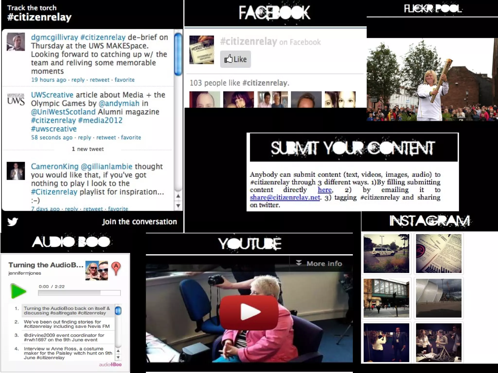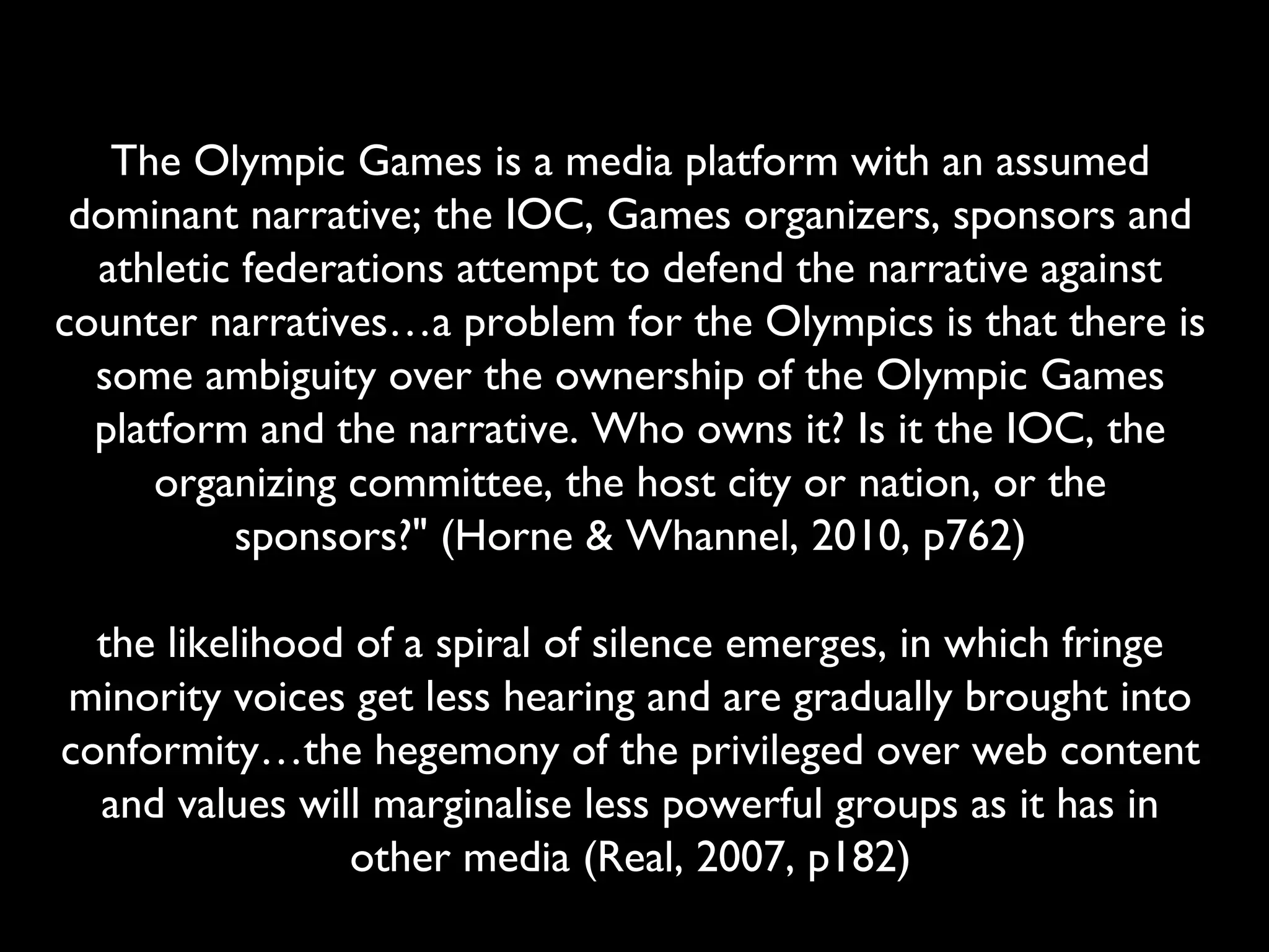The document discusses the challenges of narrative control in the context of the Olympic Games, highlighting the ambiguity of ownership over the event's media platform. It emphasizes the role of citizen media, such as #citizenrelay, in providing alternative narratives and mobilizing community participation through decentralized structures and digital technology. The concluding thoughts advocate for the coexistence of citizen-owned initiatives and established media to enrich social and political discourse in Scotland leading up to significant events like the Glasgow 2014 Commonwealth Games.