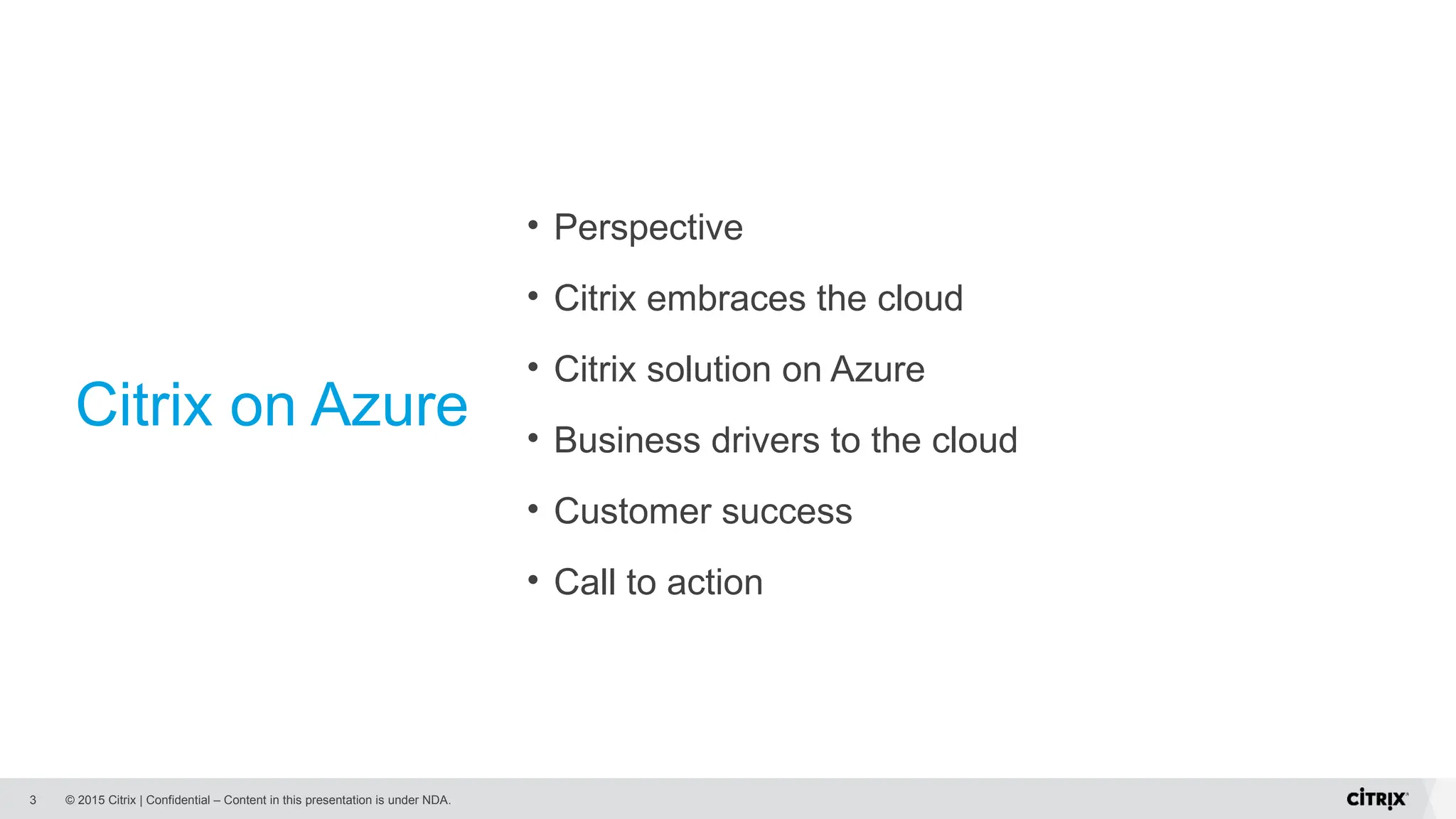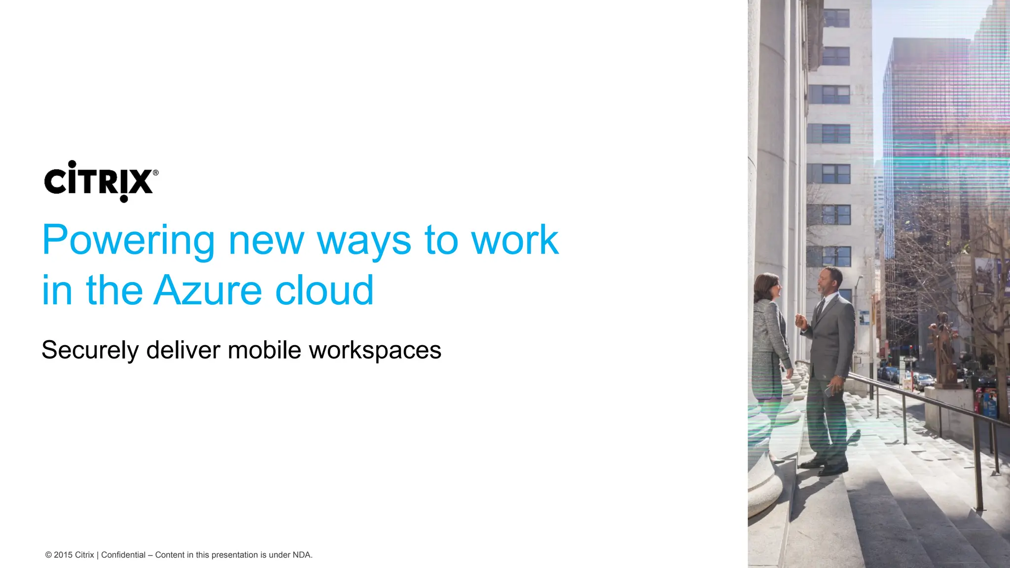 The document presents Citrix's strategies for leveraging Azure cloud to enhance mobile workspaces and streamline IT operations. It discusses the benefits of cloud scalability, business continuity, and the integration of Citrix solutions with Azure to optimize business capabilities and reduce costs. It highlights customer success stories and emphasizes the importance of understanding business drivers for effective cloud adoption.