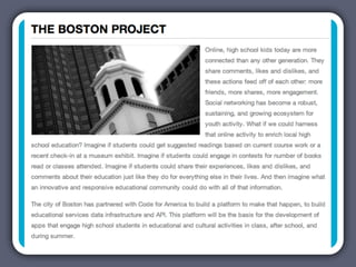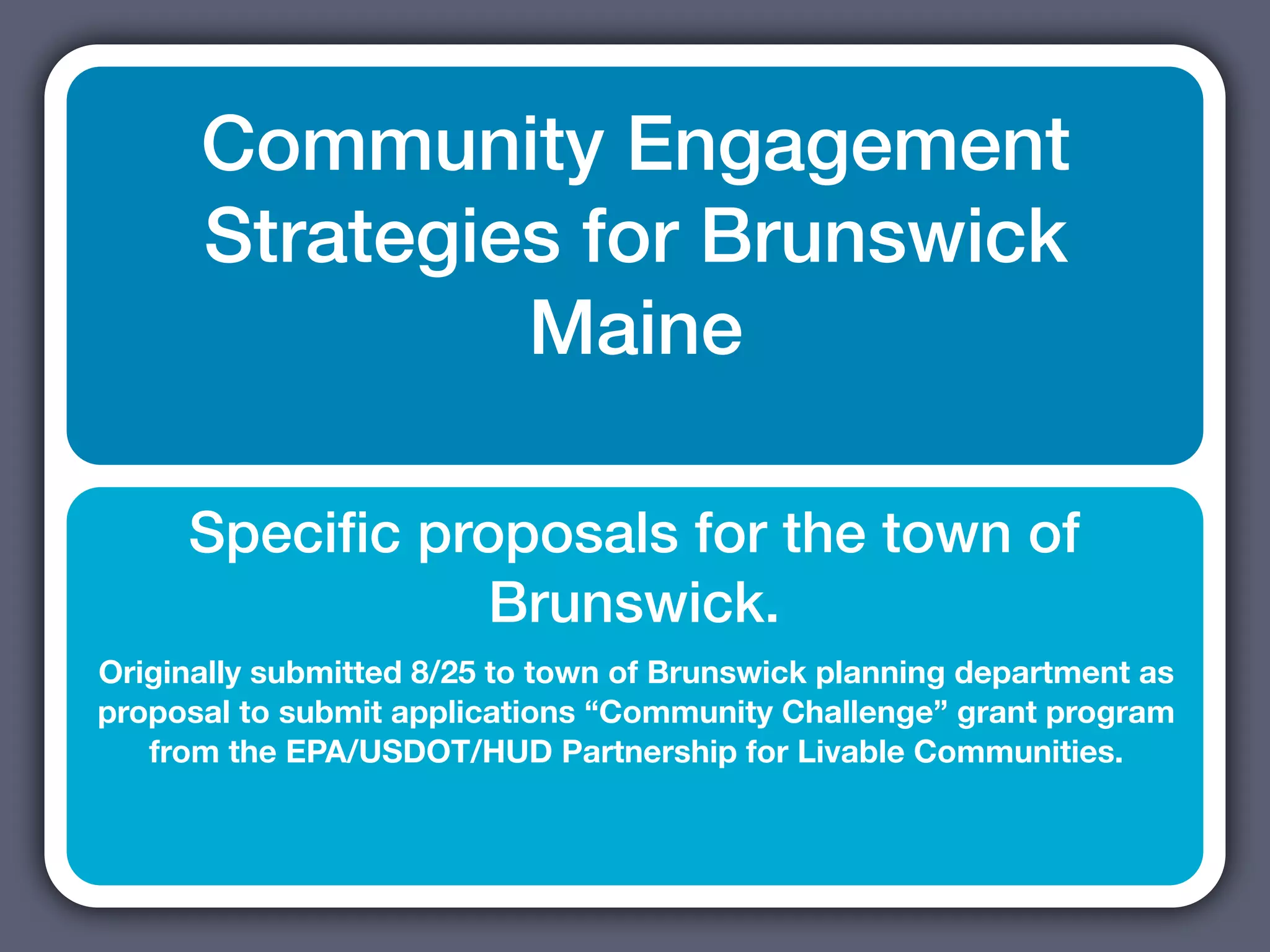 The document outlines community engagement strategies for Brunswick, Maine, focusing on issues such as housing affordability, demographic shifts, and the effects of rising energy prices on local residents. It recommends utilizing grants from federal partnerships to address these challenges through sustainable community development and improved transportation options. Key opportunities identified include attracting young talent and creating business clusters that foster economic growth in the region.