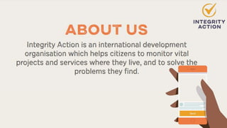 The document discusses the evolution of a civic tech app aimed at enabling community monitors to report issues and progress, detailing changes made through various versions based on user feedback. Key learnings reveal challenges with qualitative data and a shift towards simpler, more structured question formats to enhance user experience and data comparability. Ultimately, the goal is to gather relevant and actionable data while considering accessibility and multilingual complexities.