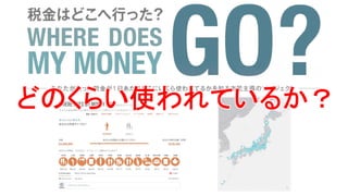 プロジェクトの目的 「あなたが払った税金が1日あたりどう使われているかを知ること で、公共サービスの受益と負担の関係を読み解く市民主導のプ ロジェクトです」(http://spending.jp/ より)