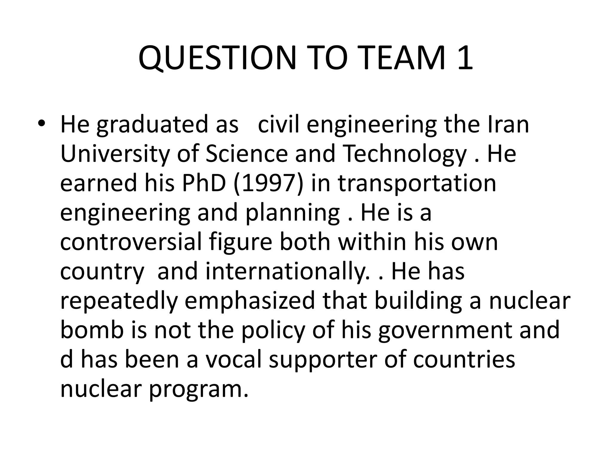 1. The former president of Iran, known for his role in Iran's nuclear program.