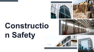 This document defines key terms related to construction safety and outlines general safety provisions for construction projects. It covers definitions for scaffolding components, hoists, lifting equipment, cranes, and other machinery. It also establishes requirements for fall protection, material storage, traffic control, compressed gas storage, vehicle operation, ventilation of enclosed areas with engines, and use of personal protective equipment. The provisions are meant to establish minimum safety standards, and other governmental regulations that require higher safety levels must be followed.
