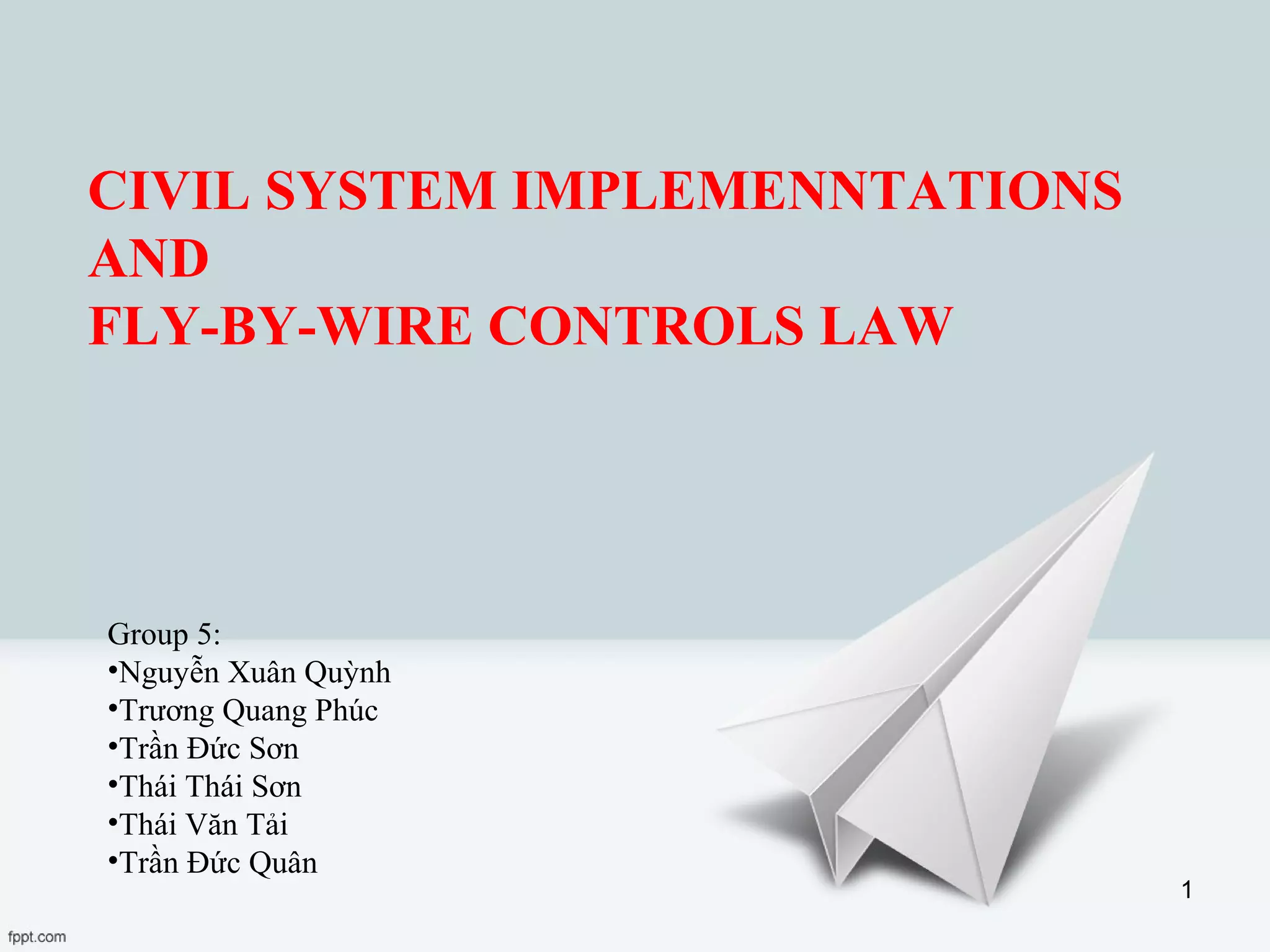 The document discusses civil aircraft fly-by-wire system implementations and control laws. It compares the Airbus and Boeing philosophies, noting Airbus uses 5 main computers while Boeing uses 3 primary flight computers each with 3 similar lanes. It then details the Airbus implementation on the A320, A330 and A340, describing the 7 computers, 3 hydraulic systems and normal and backup control functions. Finally, it outlines the different levels of fly-by-wire control laws including normal, alternate, direct and mechanical reversion modes.