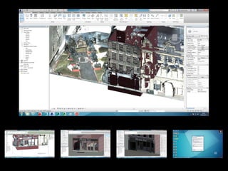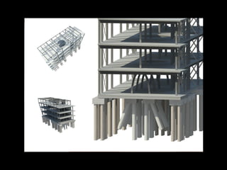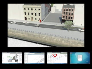 This document provides an overview of the design process for a new office building in Quayside, Newcastle for legal firms and training. It includes a brief introduction to the client's requirements, existing site constraints, data acquisition from a city model and point cloud, and initial design developments exploring architectural precedents and structural approaches. Next steps discussed are developing mechanical, electrical, and plumbing systems and utilizing Navisworks software for integrated modeling review with stakeholders.
