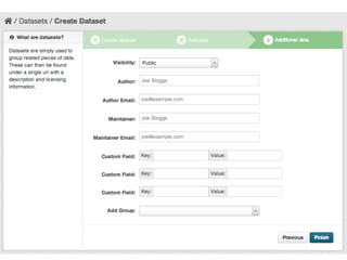 CKAN is an open-source software developed by the Open Knowledge Foundation for managing and discovering open data. It provides tools for data management and user-friendly features for searching and visualizing datasets, supporting various formats and multilingual content. The platform aims to improve governance and data utilization through accessible, openly licensed information across the globe.