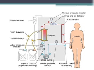This document provides information on chronic kidney disease (CKD) and dialysis. It discusses: