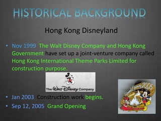 Hong Kong Disneyland and A'Famosa are two theme parks that share similarities in their offerings while also differing in key aspects. Hong Kong Disneyland opened in 2005 as Disney's first theme park in China, located on Lantau Island, while A'Famosa has been operating in Malacca, Malaysia since 1992. Both parks feature dining, shopping, and exploring attractions related to their themes. However, Hong Kong Disneyland focuses more on meeting Disney characters and indoor shows, while A'Famosa emphasizes outdoor activities and interacting with animals at its safari and water parks.