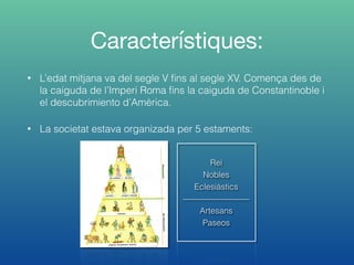 • L’edat mitjanava del segle V fins al segle XV. Comença des de