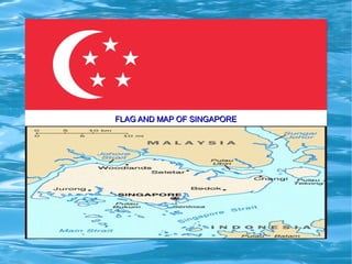 Singapore is an island city-state located off the southern tip of the Malay Peninsula in Southeast Asia. It has a population of over 5 million people and was initially a British trading post before gaining independence in 1965. Singapore has a highly developed market economy and ranks highly in terms of economic competitiveness and human development. The country has four official languages and major religions practiced include Buddhism, Christianity, Islam, Taoism, and Hinduism.
