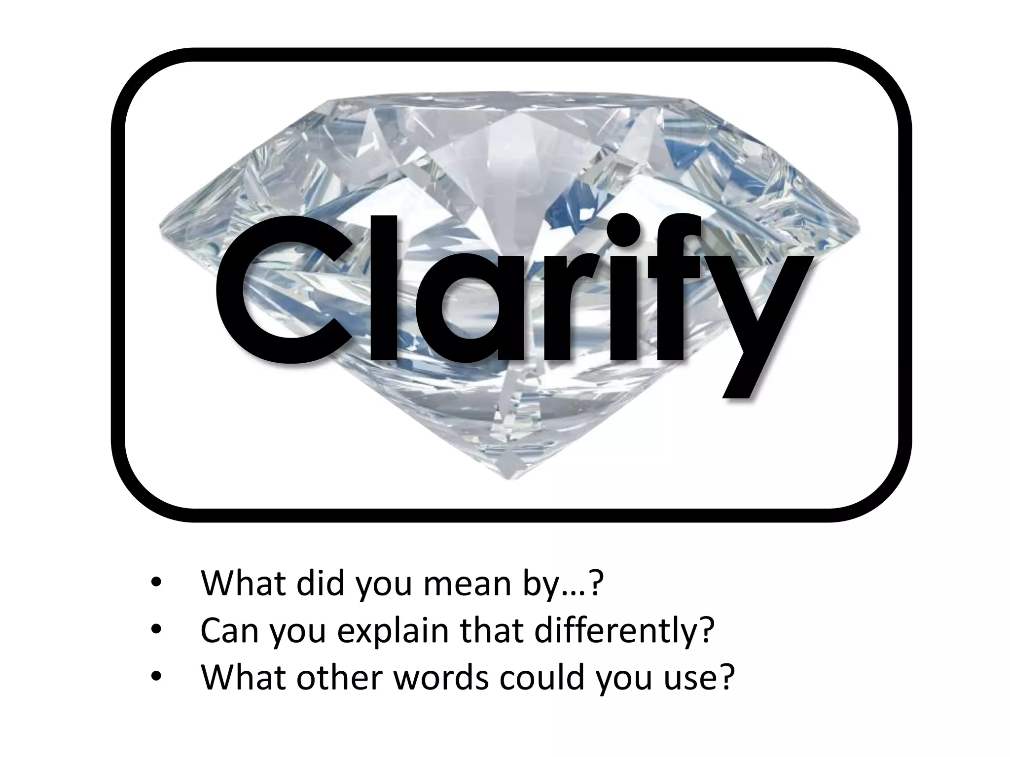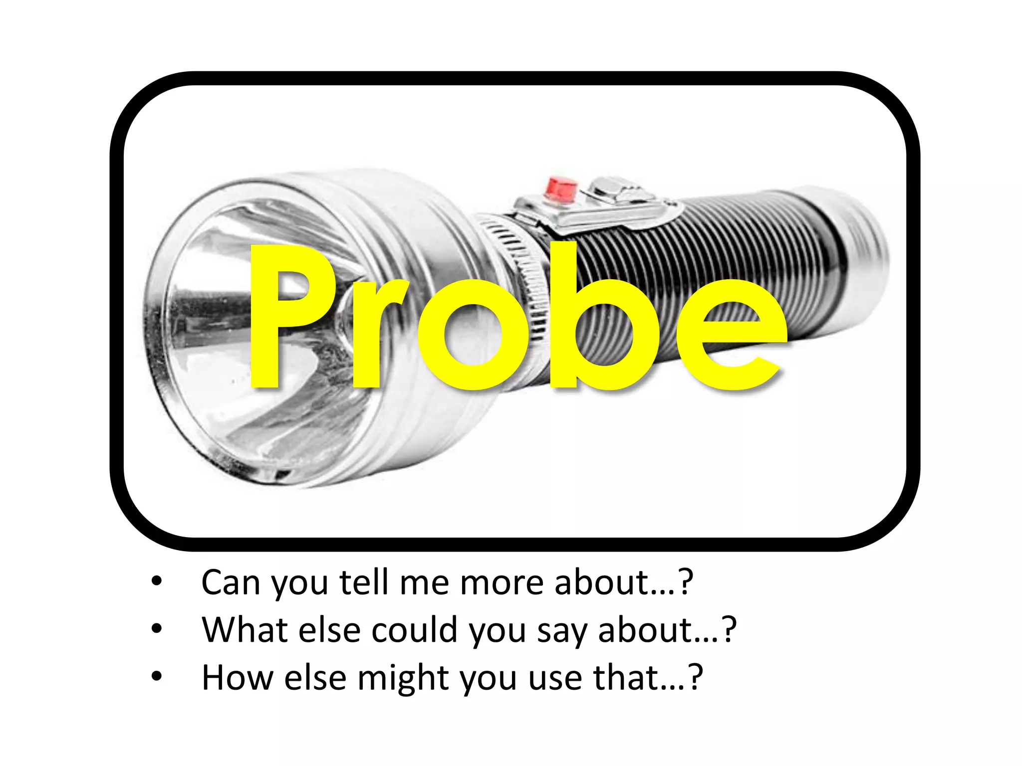 The document provides guidance on clarifying, probing, and recommending during a discussion. It suggests asking questions to clarify meaning, probe for more details, and recommend preferred responses or advice for others.