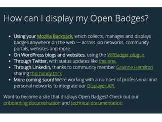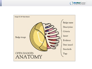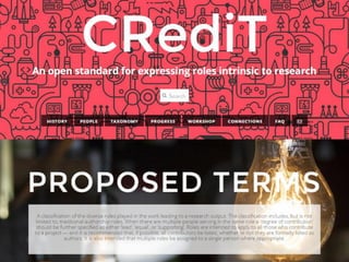 The document discusses the initiative led by Amy Kenall to clarify research contributorship through digital badges. It emphasizes the importance of recognizing diverse contributions beyond traditional authorship credit and outlines a prototype in development with stakeholder feedback. Resources and contact information for further involvement are also provided.