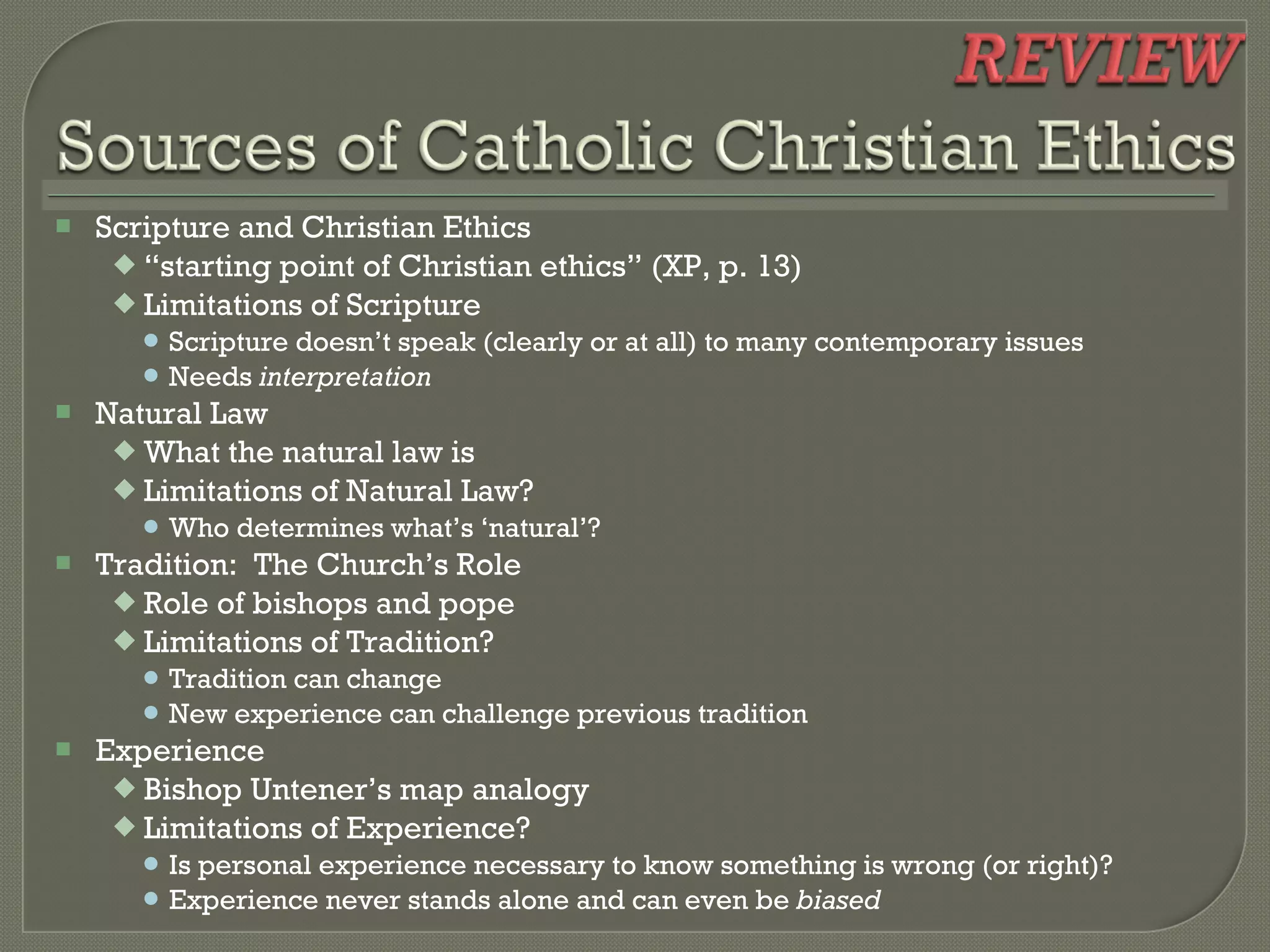 The document discusses several aspects of Christian ethics including scripture, natural law, tradition, and experience. It addresses the limitations of each and how the Catholic view moves from God to Jesus to scripture to the church. It also discusses the papal encyclical Humanae Vitae and asks for reactions to affirmations and challenges within the text. Key topics are outlined for understanding views on artificial and natural family planning.