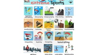 The document provides vocabulary terms for several sports including football, basketball, hockey, rugby, volleyball, baseball, soccer, boxing, and badminton. For each sport, 3-4 terms are defined that are important for understanding the rules and gameplay of that sport. The purpose is to learn important sports vocabulary in Spanish by translating the terms and definitions.