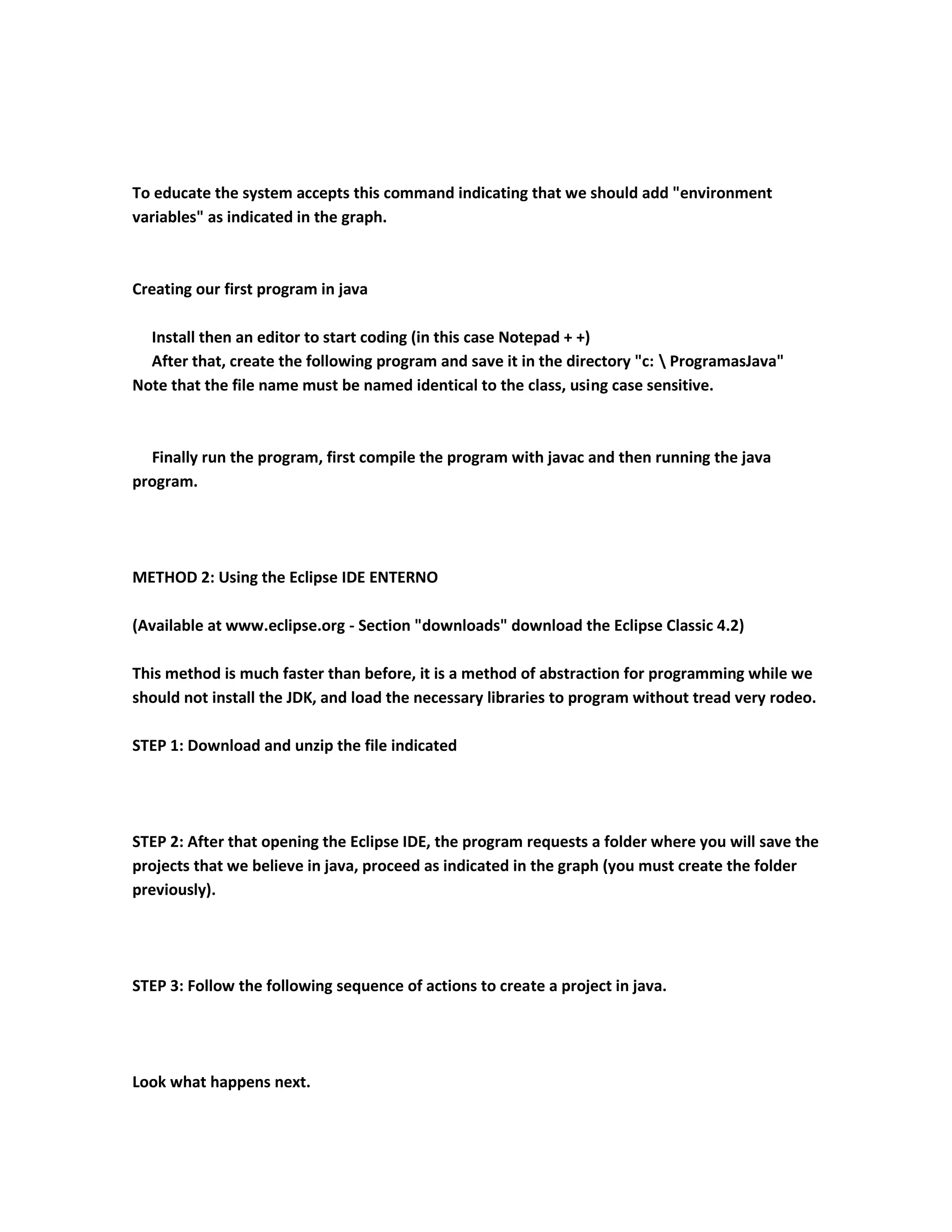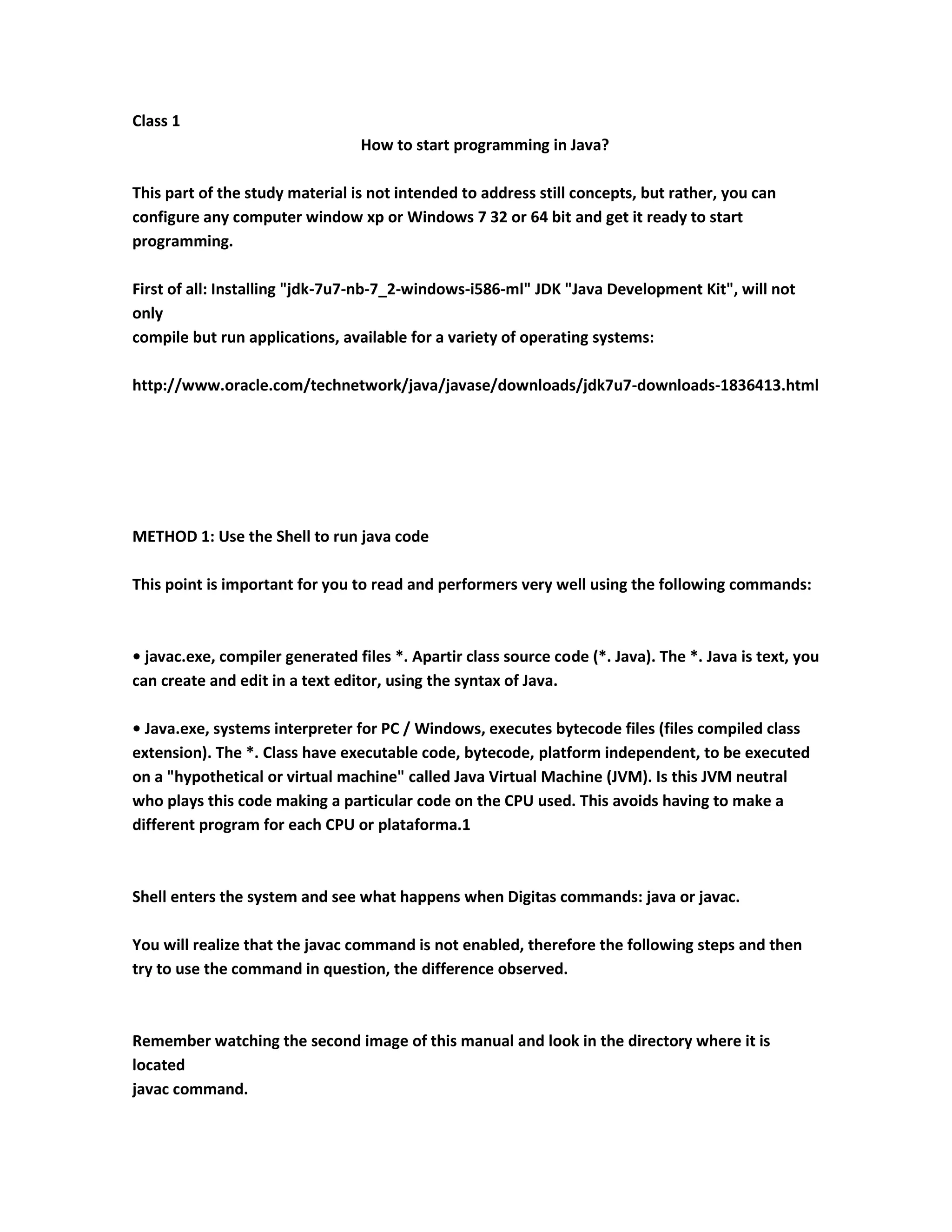 2. Two methods for starting to program in Java are presented: using the shell to run Java code manually, or using the Eclipse integrated development environment.