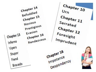 This document outlines the agenda for an English writing class. It includes a vocabulary game, a presentation on using appositives in writing, and an in-class writing assignment to draft a concept essay. Students will learn how to focus their concept, develop categories and types, and create an outline to structure their essay. The goal is for students to leave with an outline to guide their writing.