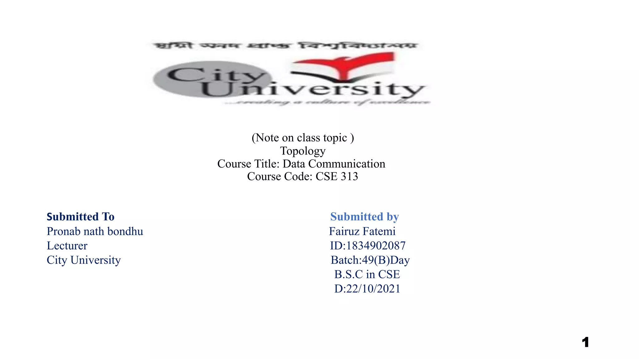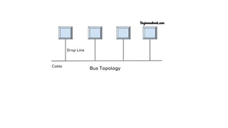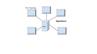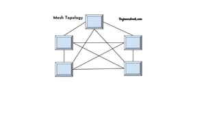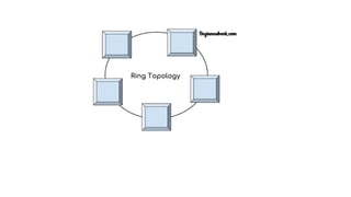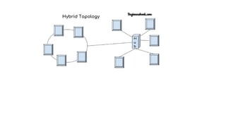 This document discusses different types of network topologies, including physical and logical topologies. It describes the key differences between physical and logical topologies, and defines six common physical network topologies: bus, ring, star, mesh, tree, and hybrid. For each topology type, it provides a brief explanation of the network configuration and data flow. The document concludes by noting some important considerations for selecting a physical network topology.