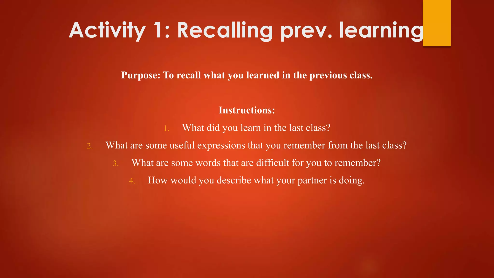 The document discusses the activities and lessons from an English language class. It describes 5 activities: