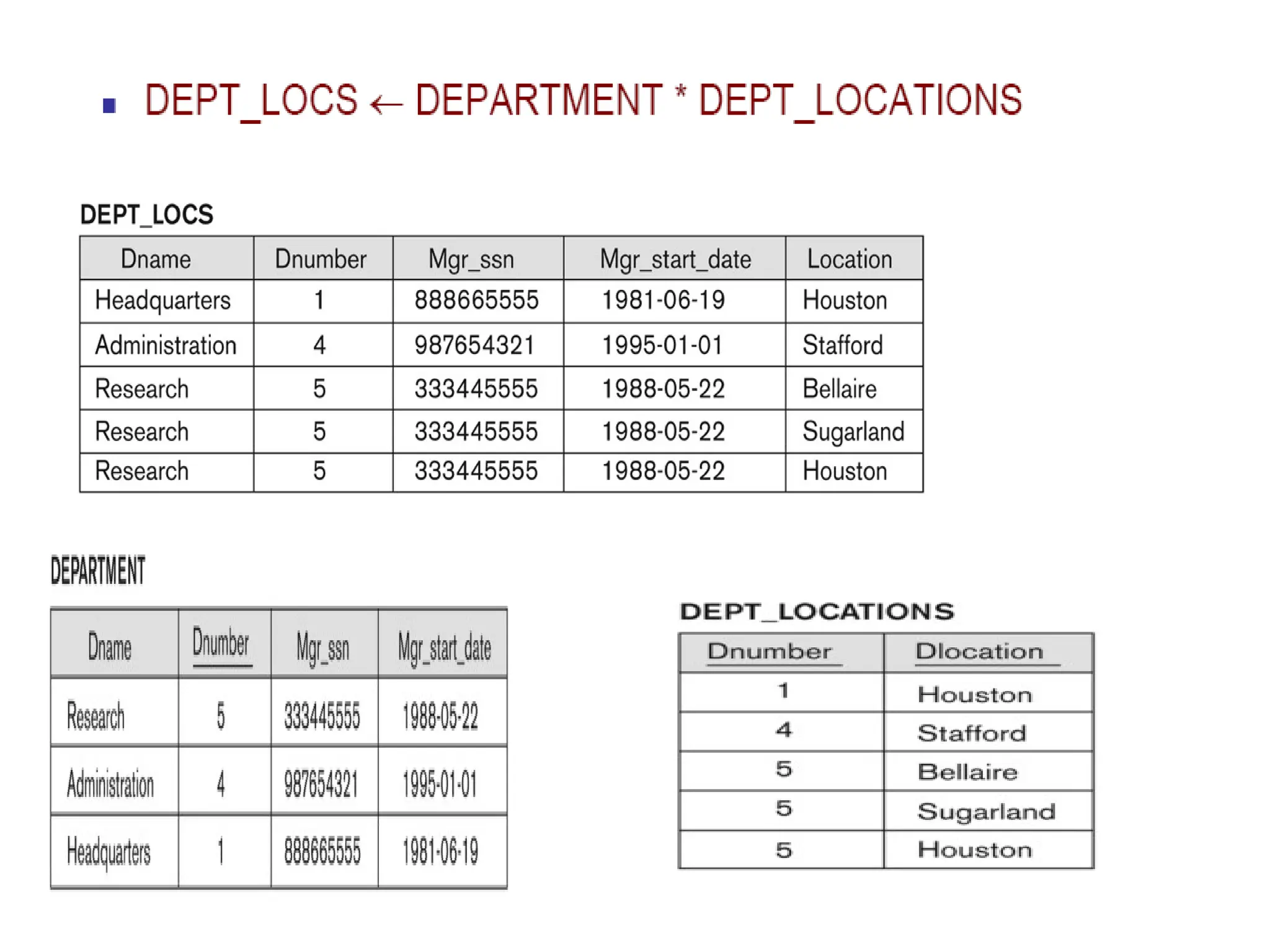 Dname Dnumber Mgr_ssn Mgr_start_date