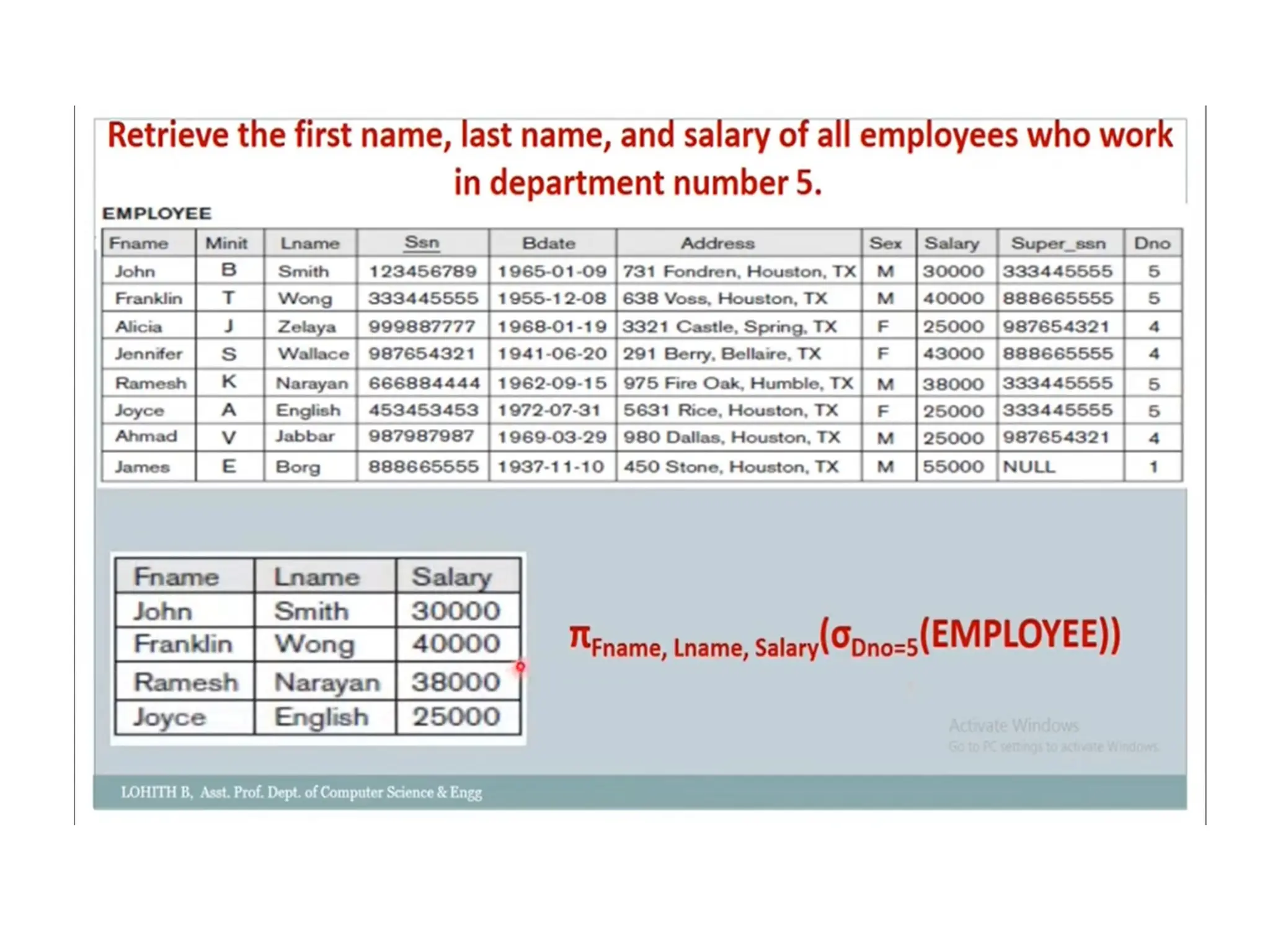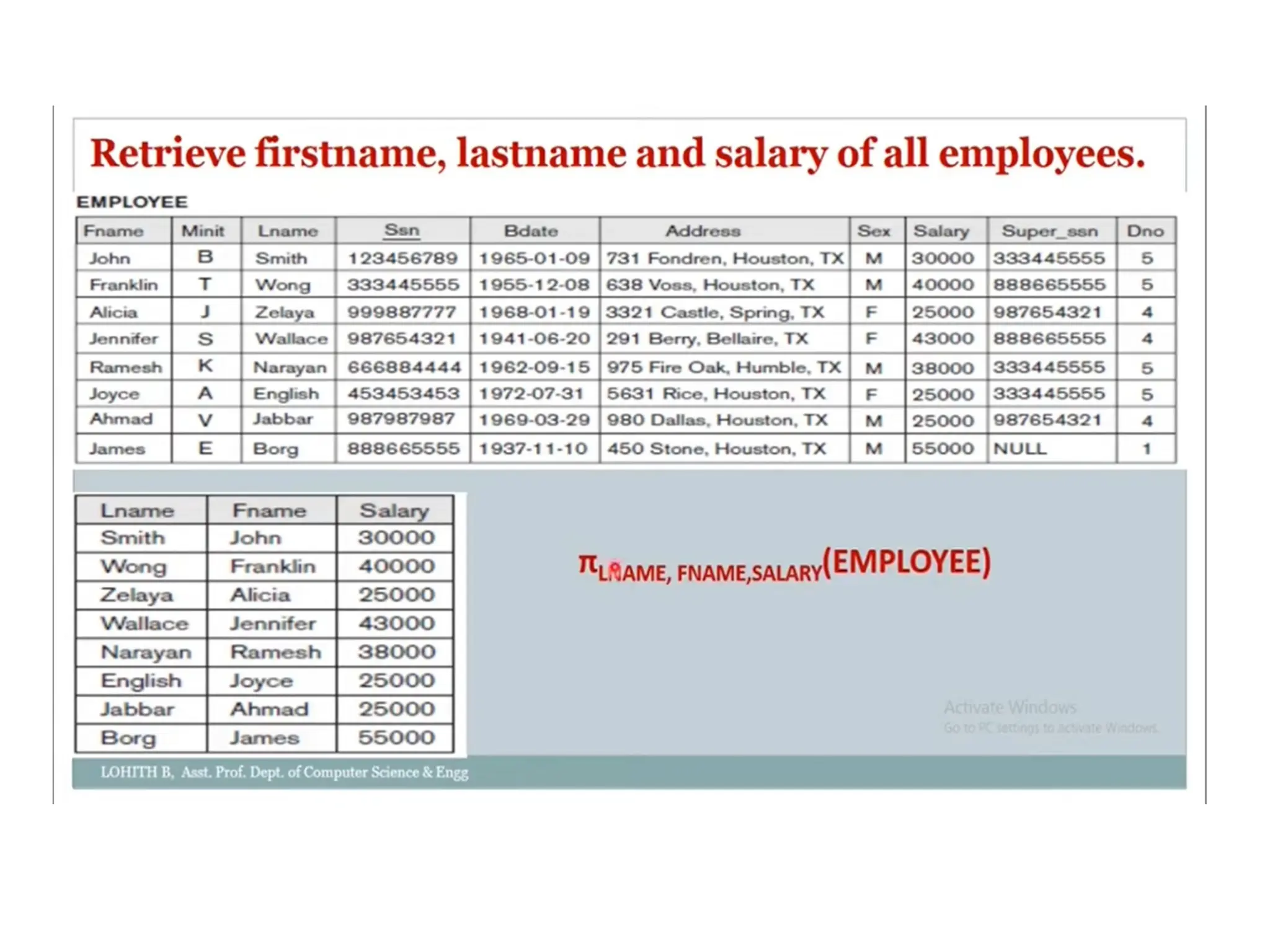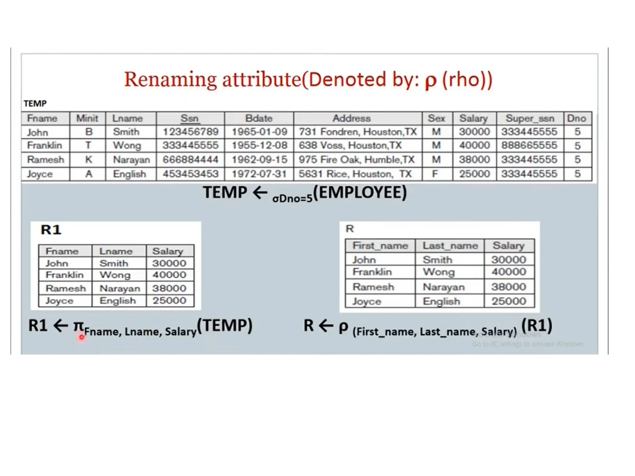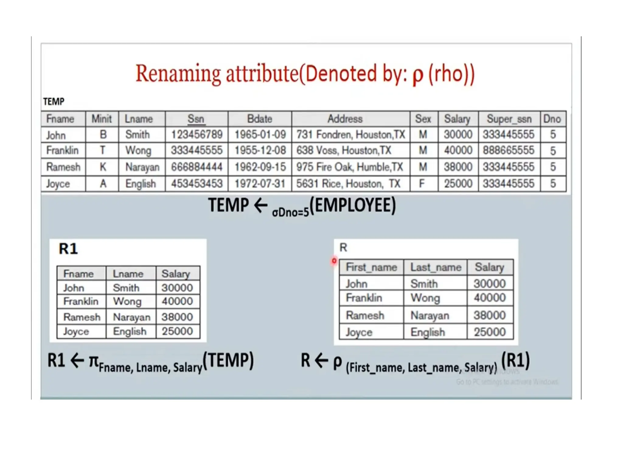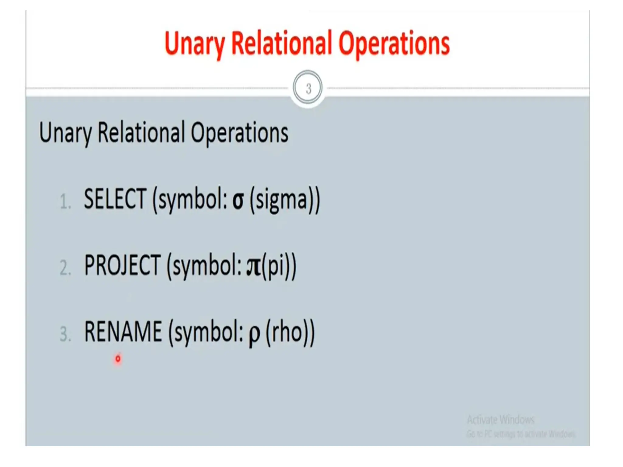 5.Explain briefly SELECT,PROJECT and RENAME operation.