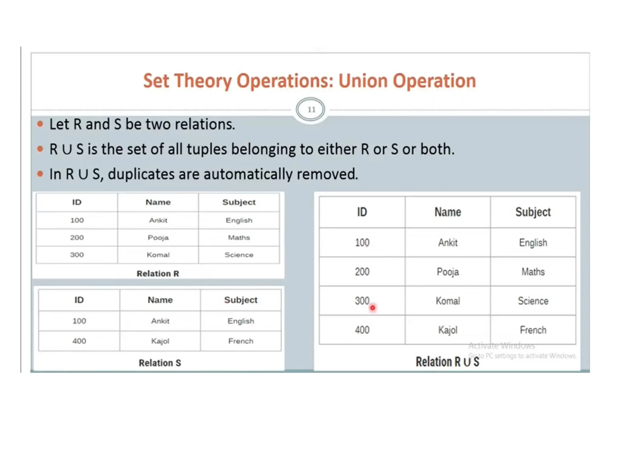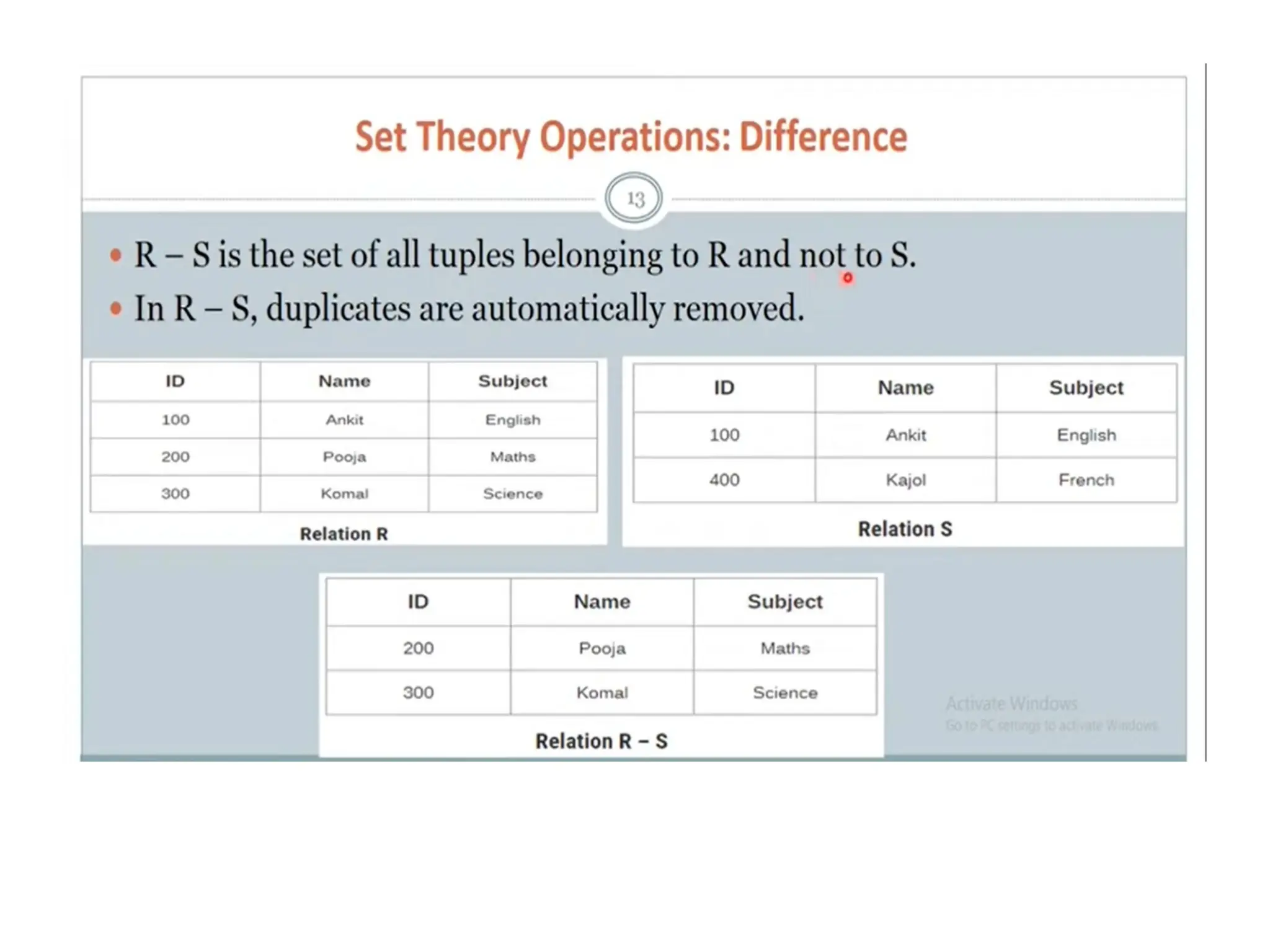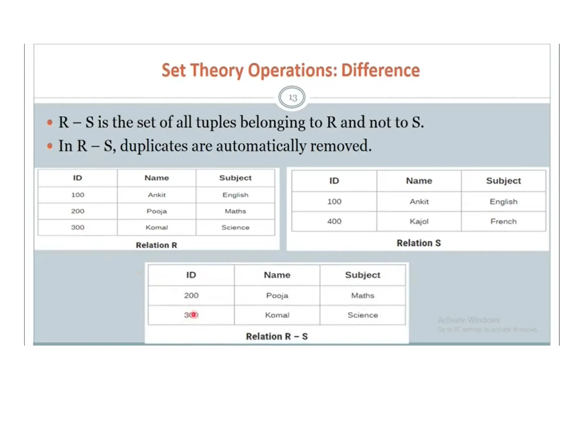 6.Explain briefly UNION,INTERSECTION and SET DIFERRENCE