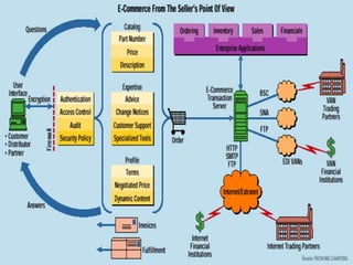 The document provides an introduction to e-business and e-commerce. It discusses key concepts such as the definition of e-commerce, unique features of e-commerce including ubiquity and interactivity. It also outlines major types of e-commerce like B2B, B2C, B2G. Advantages of e-commerce include 24/7 access and global reach. The document concludes with discussing opportunities for different industries and challenges for adopting e-commerce in India.