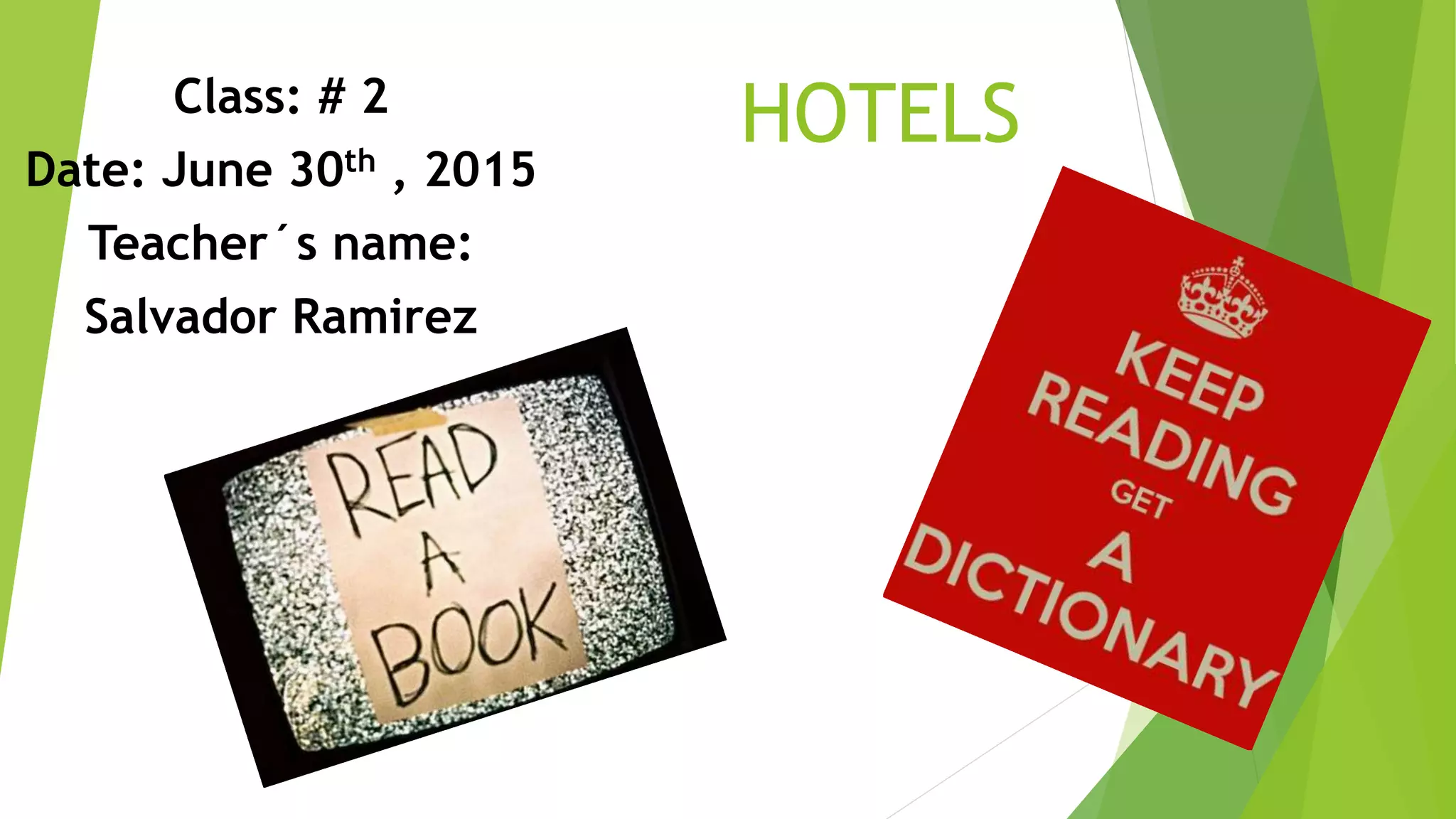 This document outlines the daily agenda and activities for an English class. The agenda includes 5 activities: 1) Recalling previous learning, 2) Singing a warm-up song, 3) Discussing subject questions, 4) Learning about dynamic and stative meanings, and 5) Wrapping up. Each activity is described in 1-2 paragraphs providing the purpose, instructions, language functions, and structures to be used. The class will focus on practicing verbs, hotel descriptions, and prepositions of location.