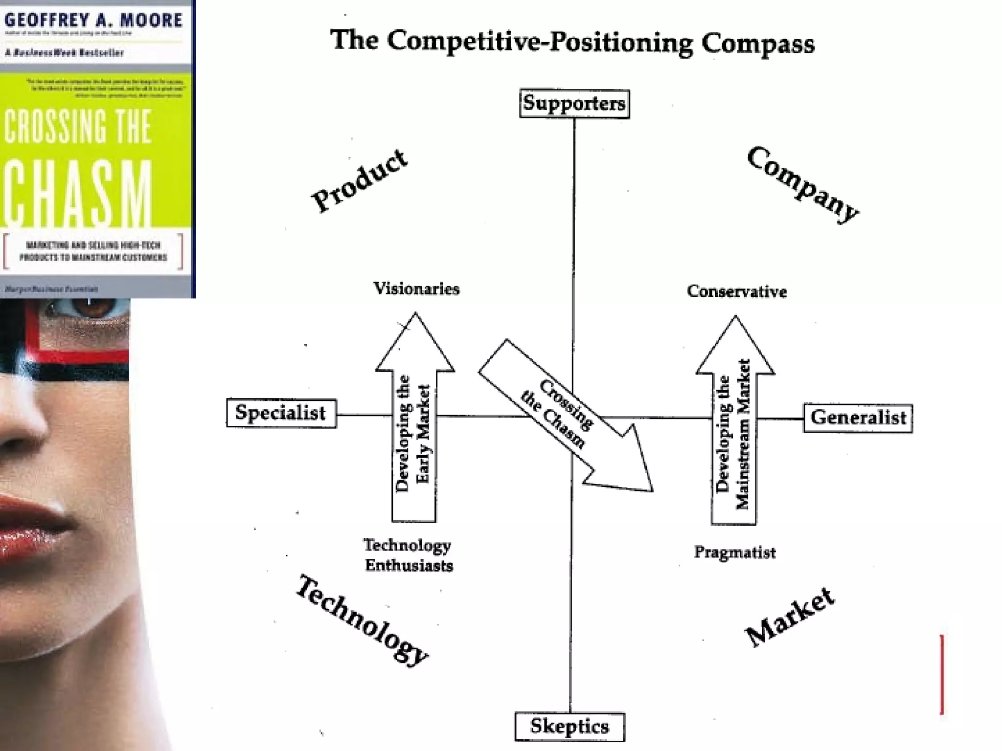 2. It summarizes key points from a book about crossing the chasm between early adopters and the early majority. The early majority are more pragmatic and risk-averse and want proven market leaders.