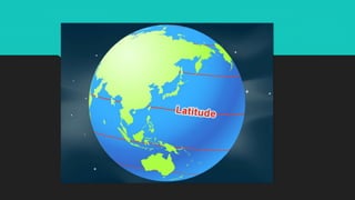 Latitudes are imaginary horizontal lines that run east to west around the Earth, also referred to as parallels. They do not intersect each other at any point. This document provides a basic definition of latitudes.