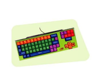 The document discusses the basic components of a computer including the keyboard and mouse as input devices, the monitor as the output display, and the system unit which houses the internal computer components and processes data according to programmed instructions. It notes that keyboards are used to input data and instructions, mice are pointing devices with buttons, monitors visually output processed results, and the system unit collectively refers to the parts inside the computer case.