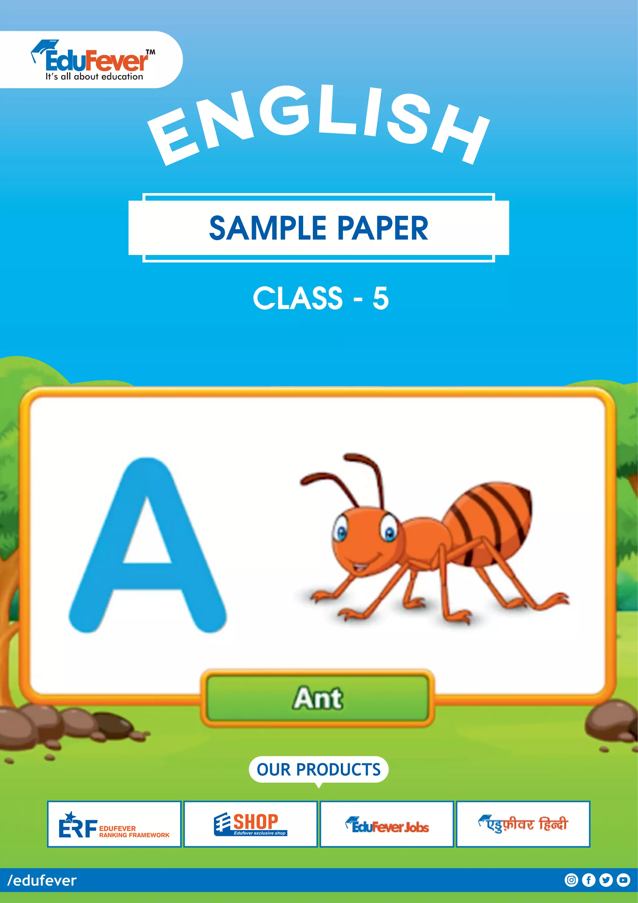 This document appears to be an excerpt from an educational product catalog or website for Edufever, an Indian education company. It promotes Edufever's ranking framework, products like sample papers and books, and services like test preparation and an online learning management system. It encourages supporting Edufever's corporate social responsibility initiatives to educate vulnerable children in India.
