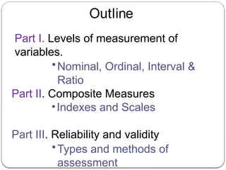 Options: Nominal, ordinal,Interval, Ratio Response Variable