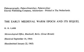 The document discusses the Medieval Warm Period between approximately 900-1300 AD. It provides evidence from historical records of warmer conditions in parts of the world during this period compared to later centuries. Climate data from central England and temperatures in Europe are discussed. While some regions like China were cooler, other areas like South Japan and Western Europe experienced warmer temperatures during this time compared to after 1300 AD, known as the Medieval Climate Optimum. There is debate around the extent and causes of warming, with more evidence needed to fully understand natural variability compared to potential human influences on climate.