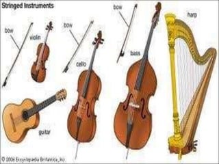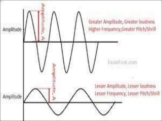 This document provides an overview of sound and how it is produced. It explains that sound is produced by vibrations traveling through a medium. Examples are given of different sources of sound like musical instruments, the human voice, and tuning forks. Key characteristics of sound waves like frequency, wavelength, amplitude, and speed are defined. The document also discusses the ranges of audible, ultrasonic, and infrasonic sound for human hearing. It describes how loudness and pitch distinguish different sounds and the factors that affect the speed of sound.