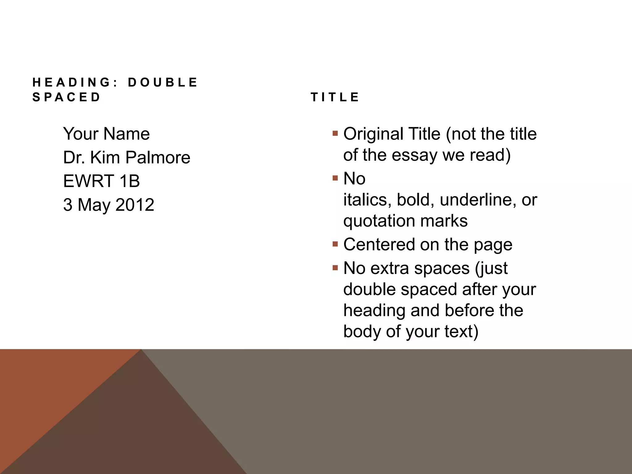 - An agenda outlining a presentation on terms, a lecture covering counterarguments, conclusions, and MLA format/citations, and an in-class writing assignment.
