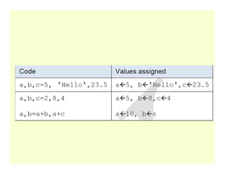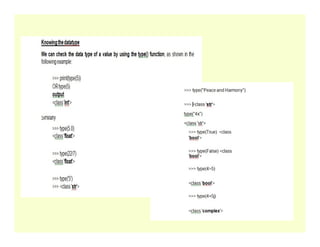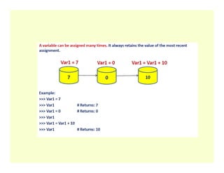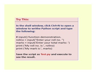 >>> print ("The sum is", Sum) # prints a message with a value The sum is 50