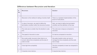 • Recursion may be a bit difficult to understand. The best way to figure out how it works is