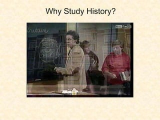 This presentation discusses how to study history through the eyes of those who lived in the past. The class grading policy focuses on summative and formative assessments, scholarly skills, and practice assignments. The schedule includes background readings followed by workshops examining primary and secondary sources to develop historical context. Students will use technology like Evernote, Mixed Ink and Wikispaces to store research, collaborate on projects, and display final works.