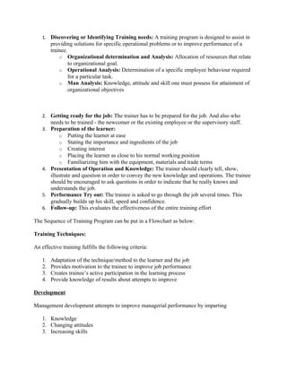 Training and development are important functions in human resource management. Training aims to improve current job performance, while development helps employees grow and prepares them for future roles. There are defined processes for assessing training and development needs, designing and implementing programs, and evaluating their effectiveness. Regular employee evaluations also allow organizations to provide feedback, identify potential, and link compensation to performance. Human resource managers advise on building robust training, development, and evaluation systems to support organizational goals.
