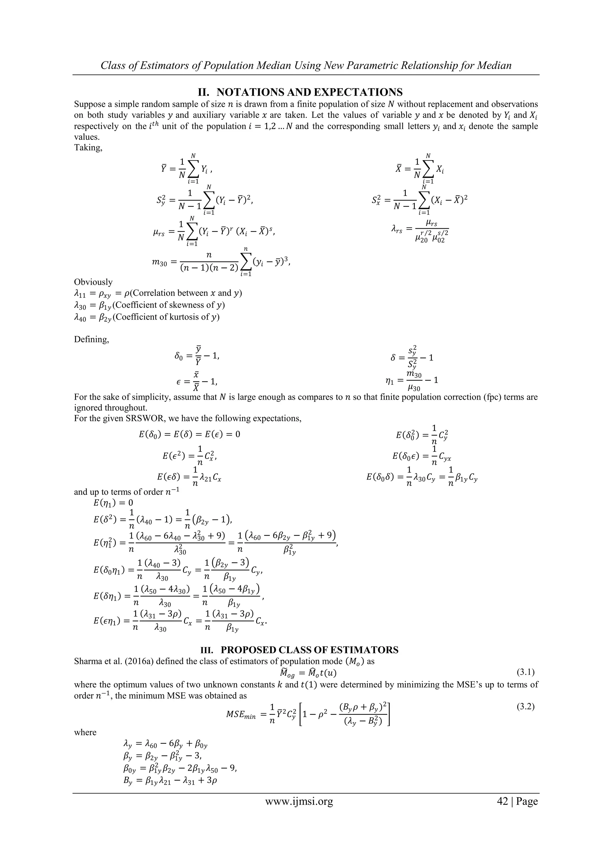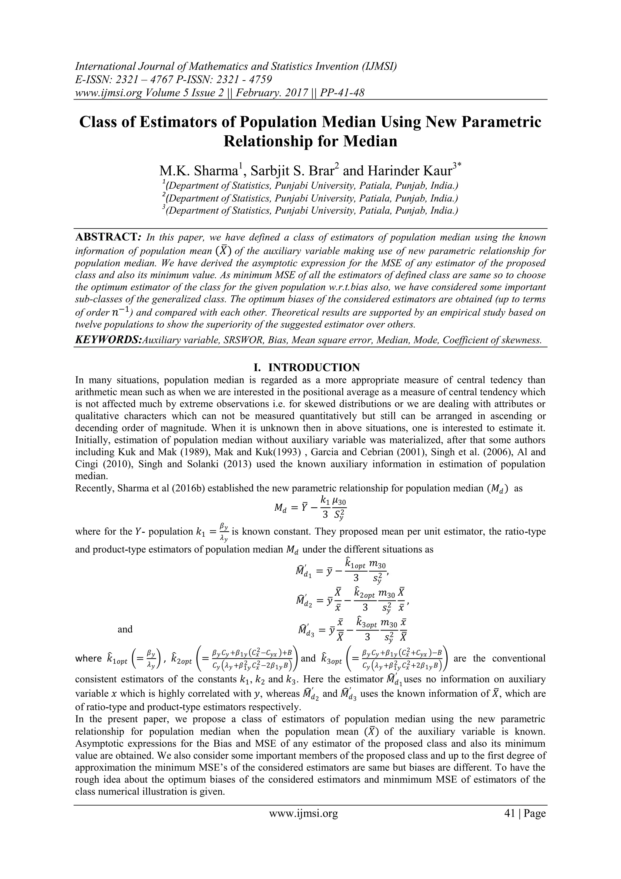 This paper proposes a class of estimators for population median using a new parametric relationship that incorporates auxiliary variable information. It derives asymptotic expressions for bias and mean square error (MSE) of the estimators and suggests optimum estimators based on minimum MSE for various subclasses. Theoretical findings are supported by empirical studies that demonstrate the proposed estimators' superiority over existing ones.