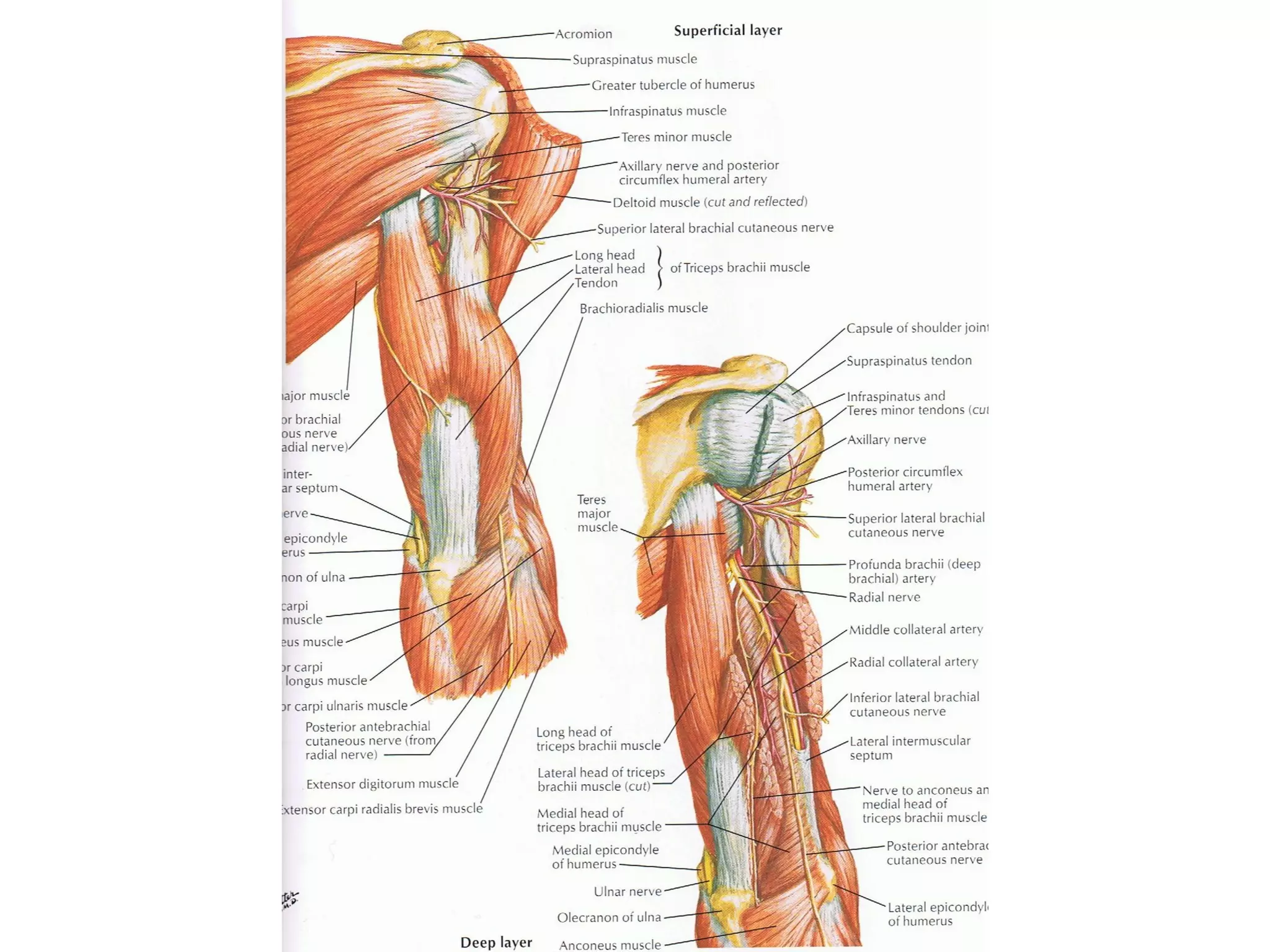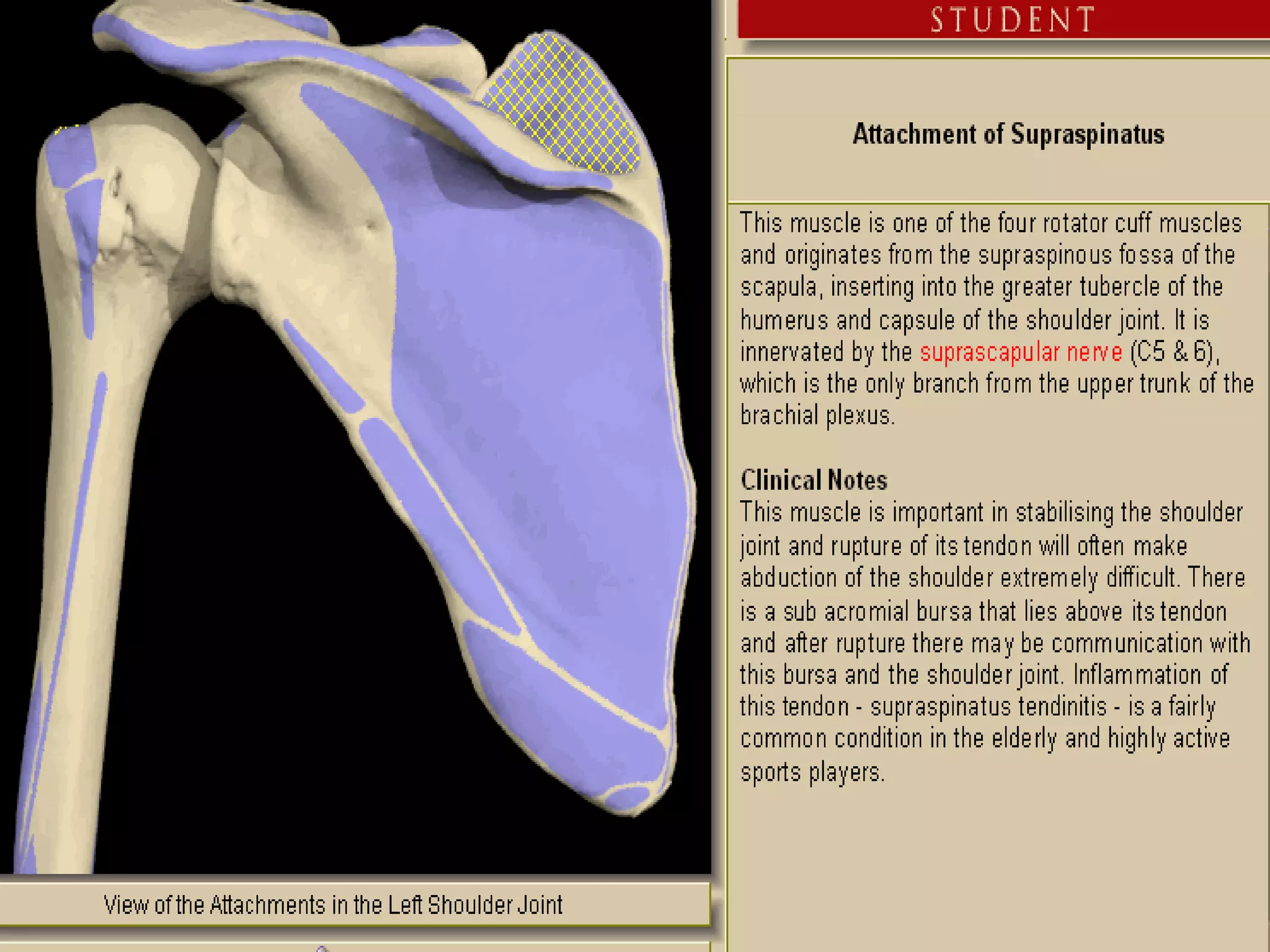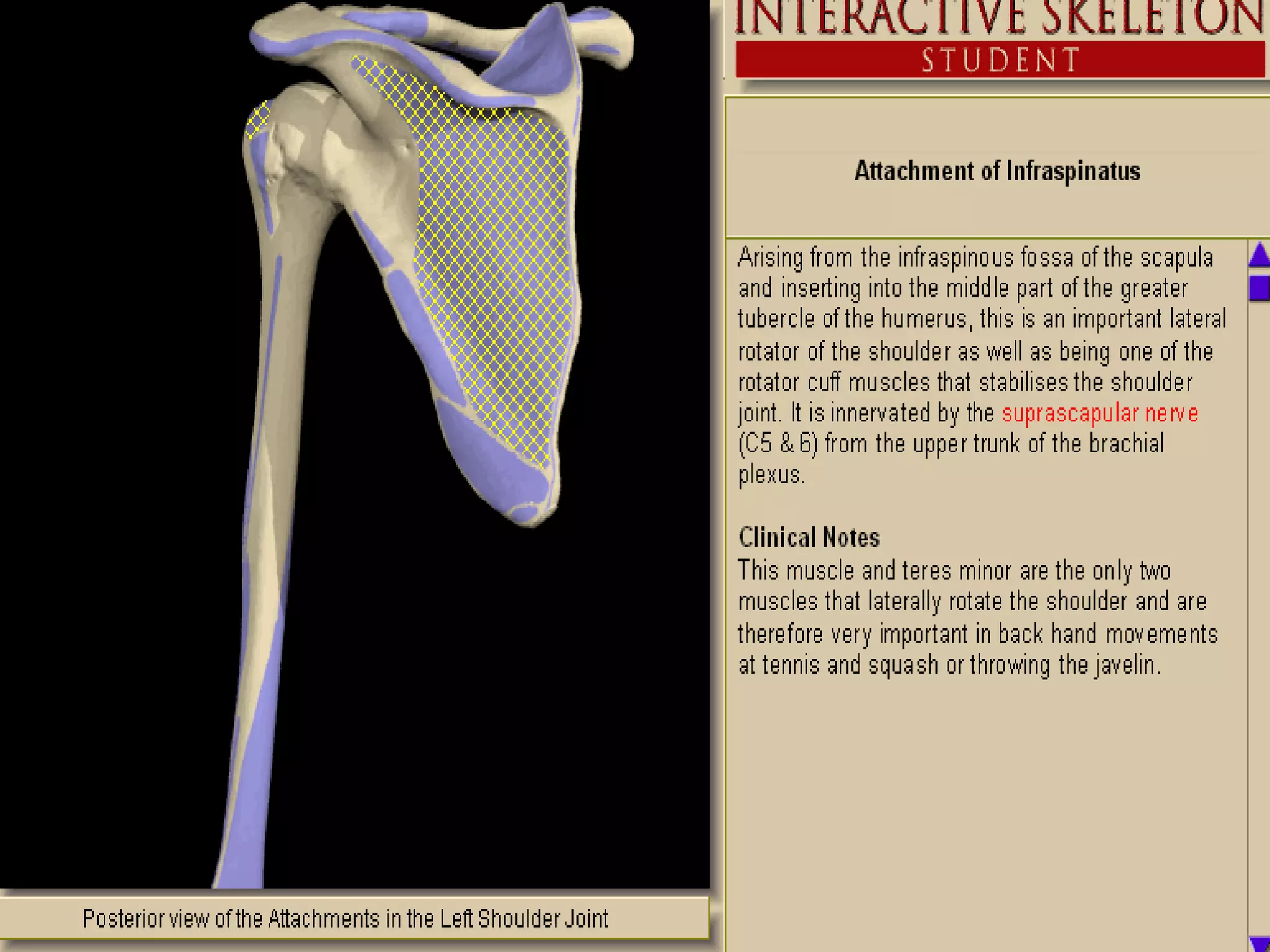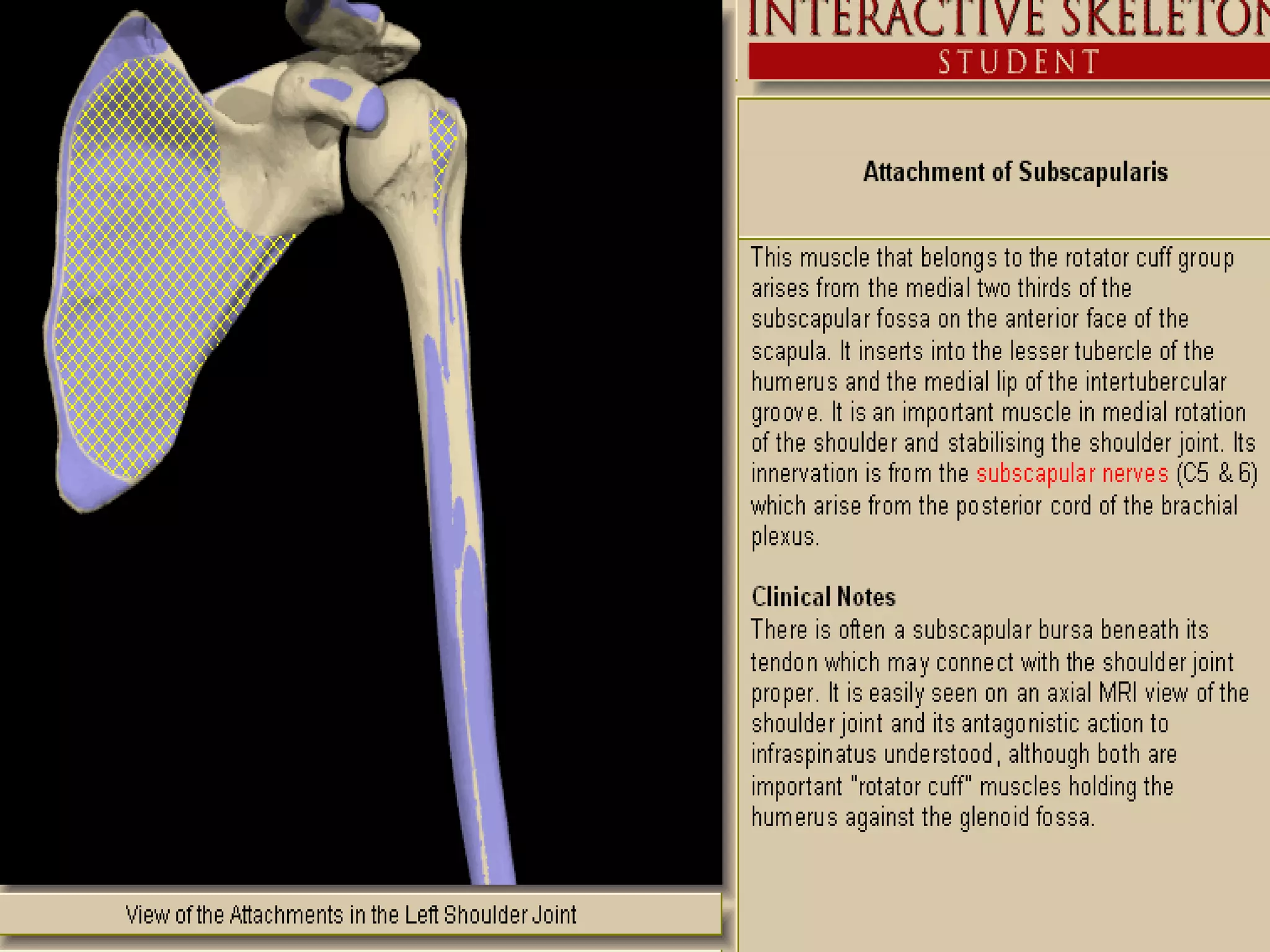 - Descriptions of the supraspinatus, infraspinatus, teres minor, and subscapularis muscles and their attachments, actions, and involvement in shoulder rotation.