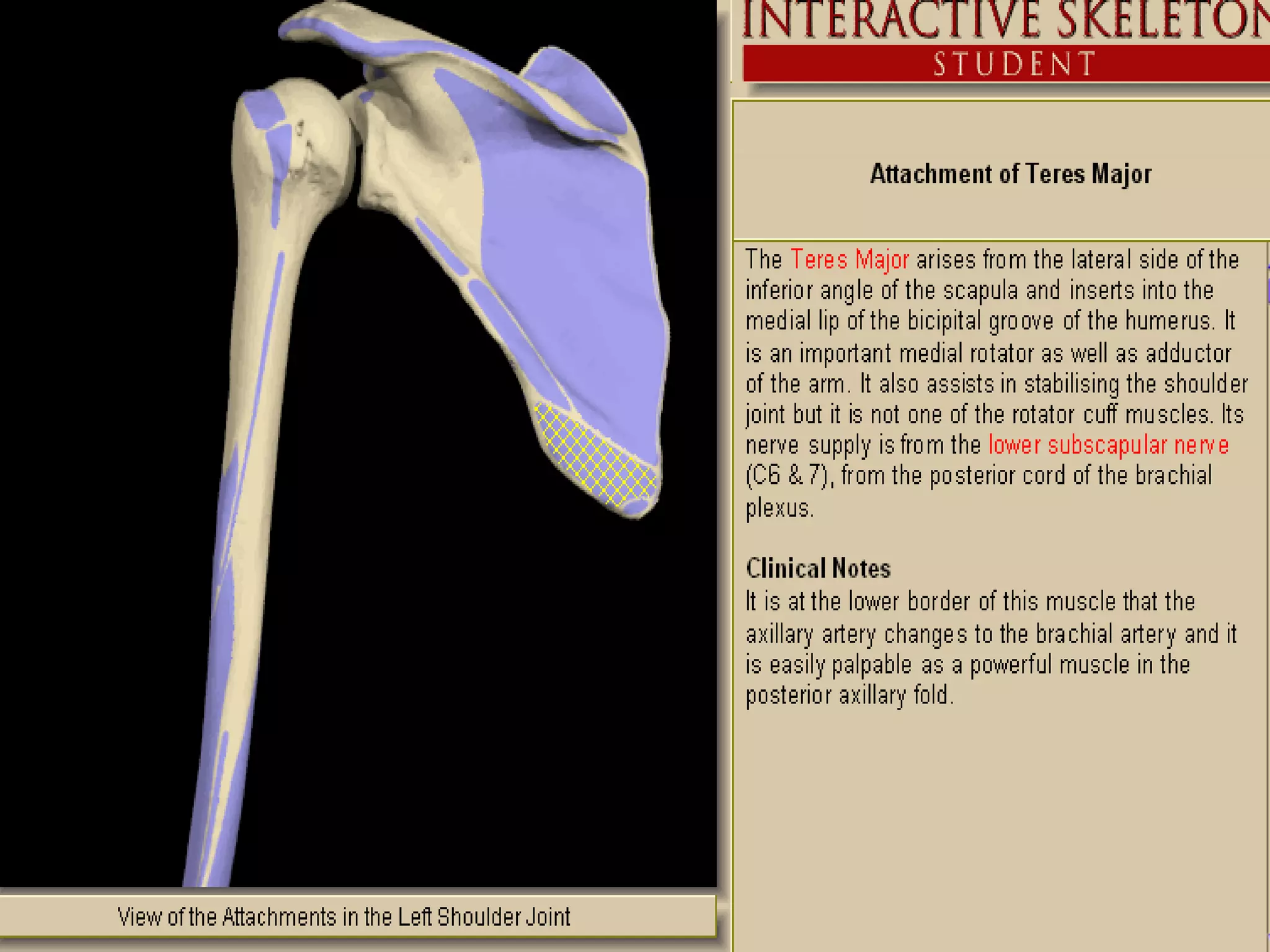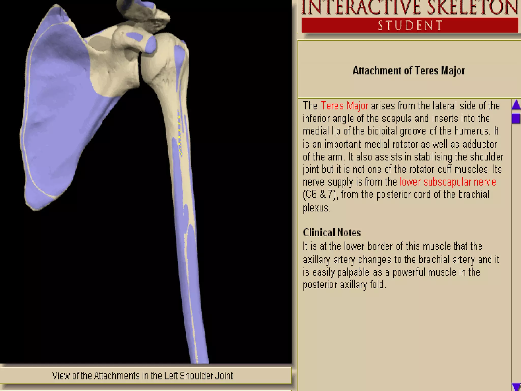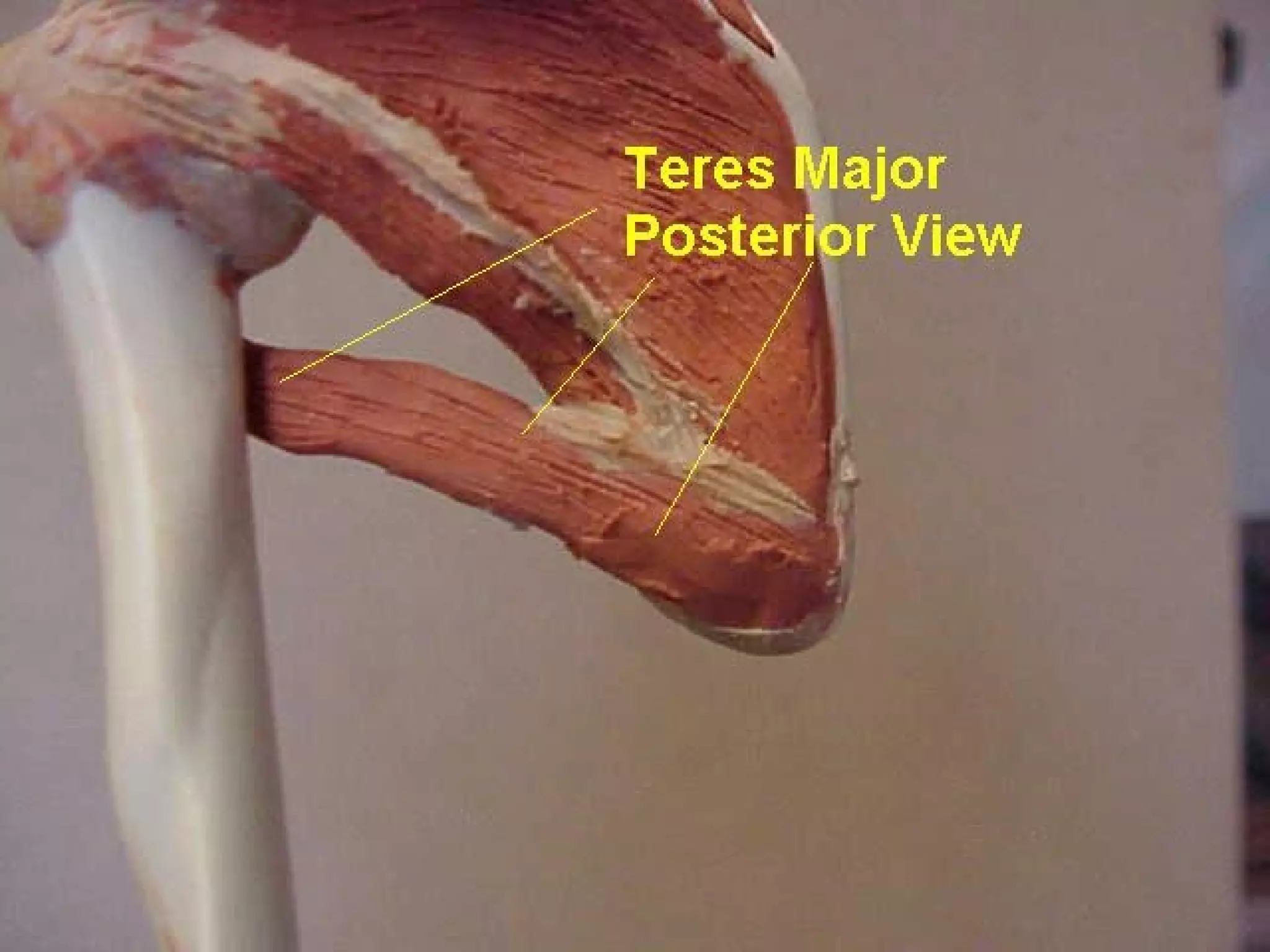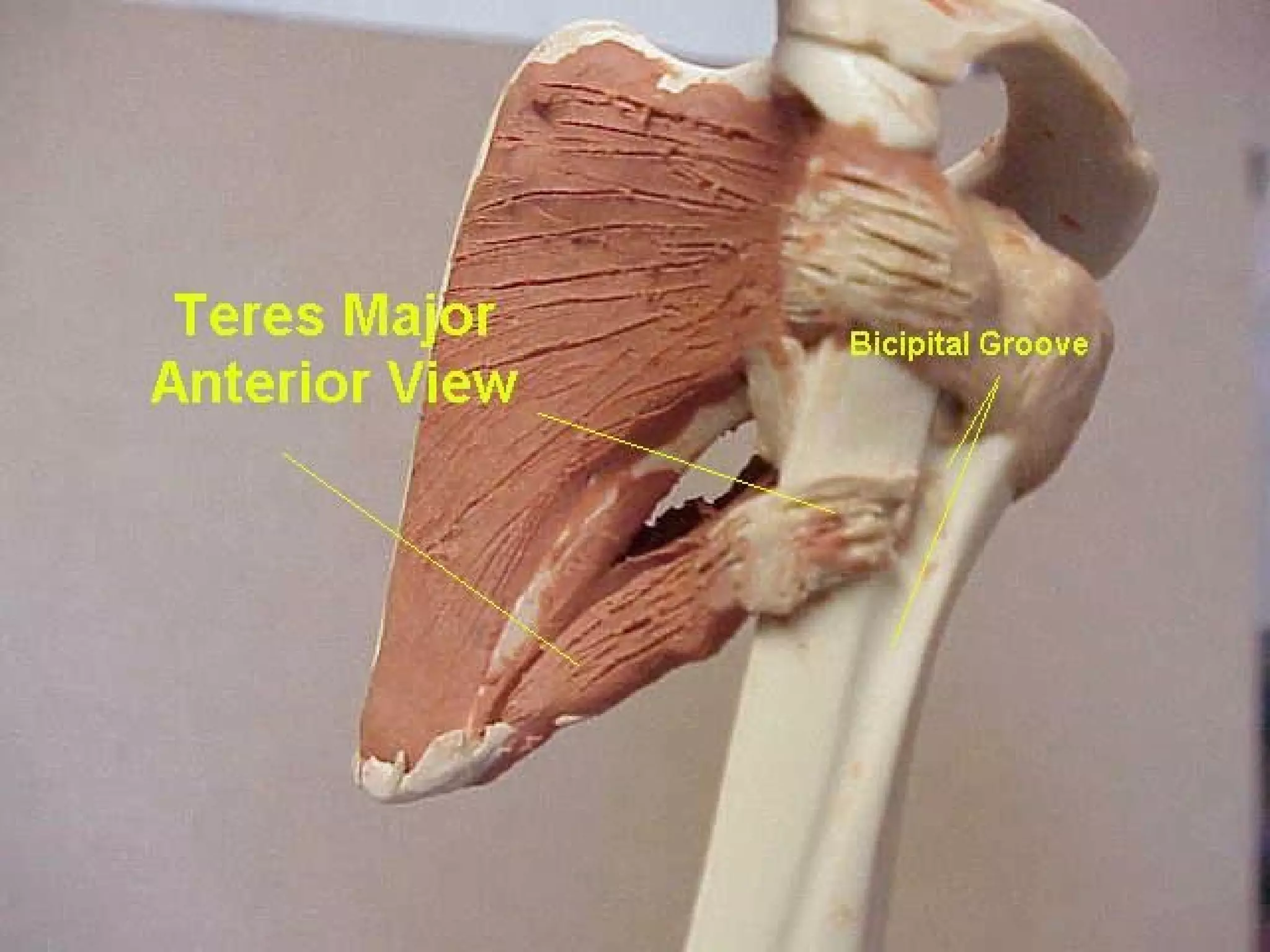 - Instructions for palpating the teres major muscle and feeling its contraction with arm movements.
