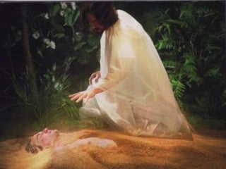 The document contains summaries of biblical passages from Ezekiel 28, Genesis 1, and 1 Timothy 6 about pride, creation, and God's immortality. It also includes diagrams about the relationships between God, Jesus, the Holy Spirit, angels, Adam, and Satan. Additionally, it presents concepts such as sin, faith, obedience, love, and salvation illustrated through scripture references. Overall, the document seeks to convey biblical teachings about God, humanity, and their interconnection.