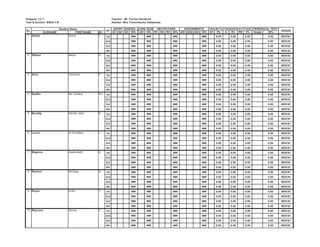 The document appears to be a class grade sheet for an English 1 course taught by Mr. For-Ian Sandoval. It lists 10 students and includes columns for their scores on short quizzes, long quizzes, recitations, assignments, attendance/attitude, and periodical tests across four grading periods. However, all the scores are currently filled with ###, indicating the grades have not yet been filled in. The grade sheet also includes columns for calculating each student's general average and final grade.