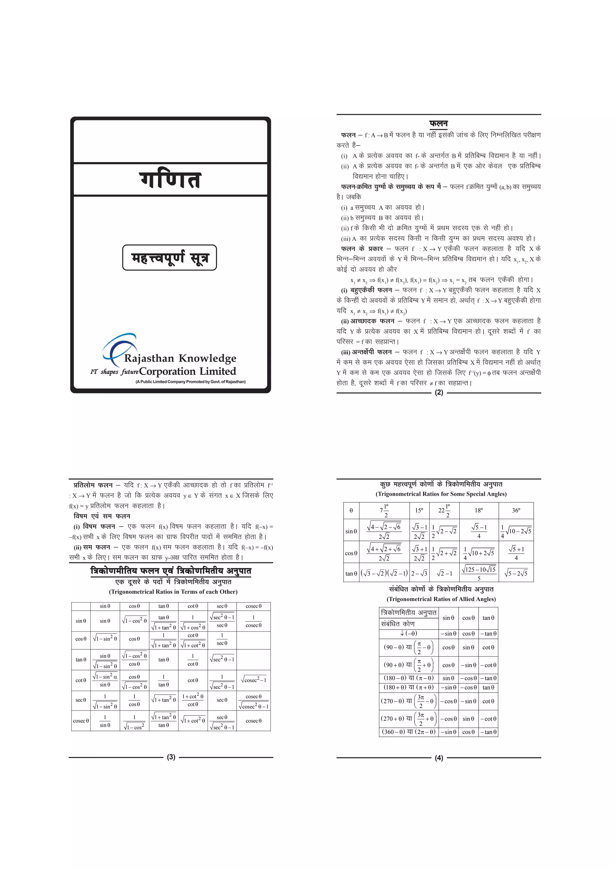 : X → Y esa Qyu gS tks fd çR;sd vo;o y ∈ Y ds laxr x ∈ X ftlds fy, (Trigonometrical Ratios for Some Special Angles)